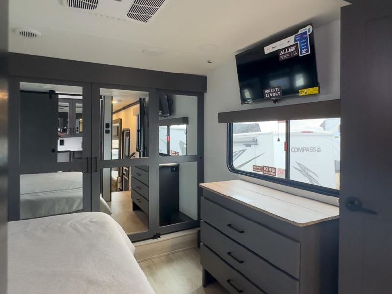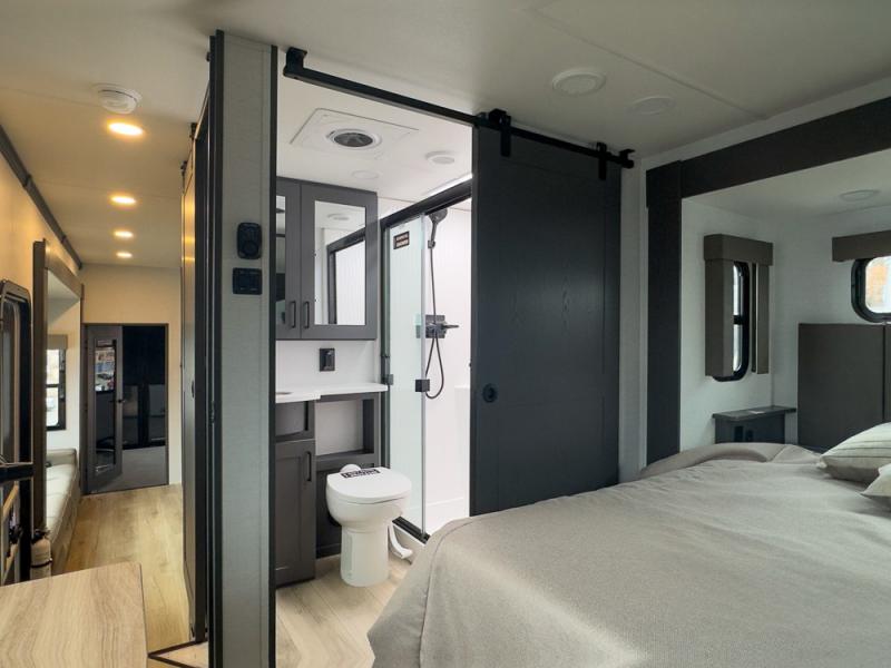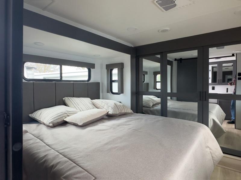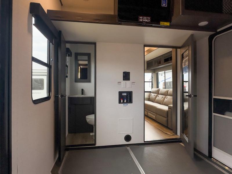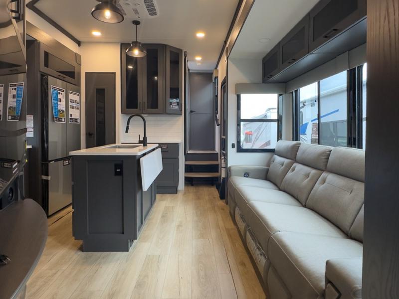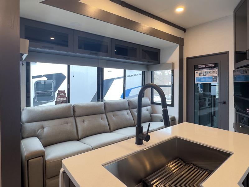 You can bring your toys with you wherever you go with any one of these Alliance RV Valor toy hauler fifth wheels! They are adventure-ready with a quality build from the walk on roof with seamless PVC roof covering to the commercial grade vinyl flooring and MorRyde CRE3000 suspension system. The Performance Running Gear package comes with a 101" wide-body benchmark chassis platform, 7,000 lb. Dexter axles, and a space enhancing drop frame storage compartment to pack in all your riding gear. You can even go off-gridding thanks to the Off the Grid Pack that has two 400 watt solar panels, generator prep, a 40 amp charge controller, and a 100 amp hour lithium iron phosphate battery. Some of the interior comforts you will enjoy are the hardwood cabinet doors and drawers, solid surface kitchen countertops, and commercial grade vinyl flooring with no carpet to make clean up a breeze. The Valor toy haulers are also the Masters of 12 Volt with USB charging station throughout, a stainless steel refrigerator, and more 12 volt features to make camping hassle-free!