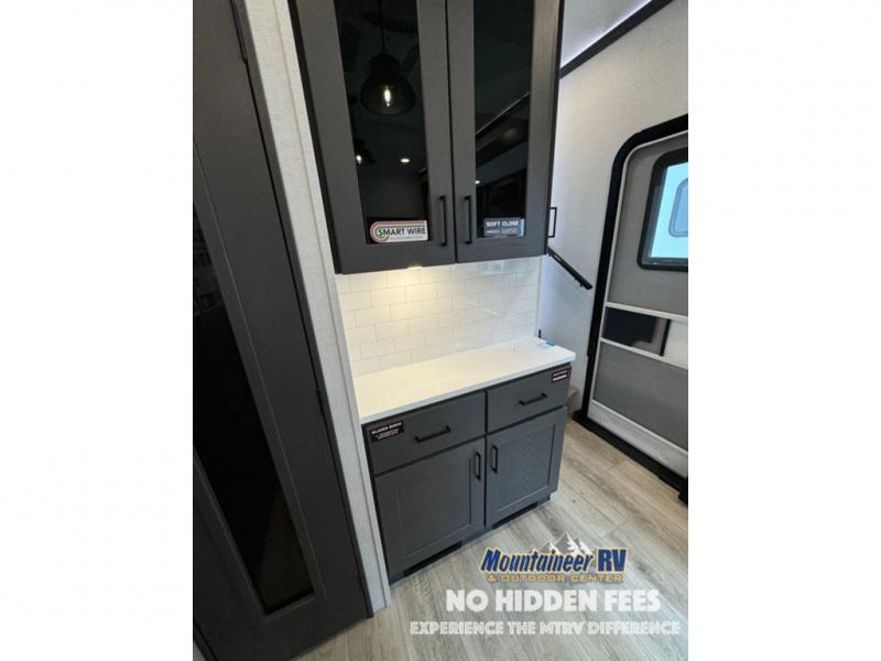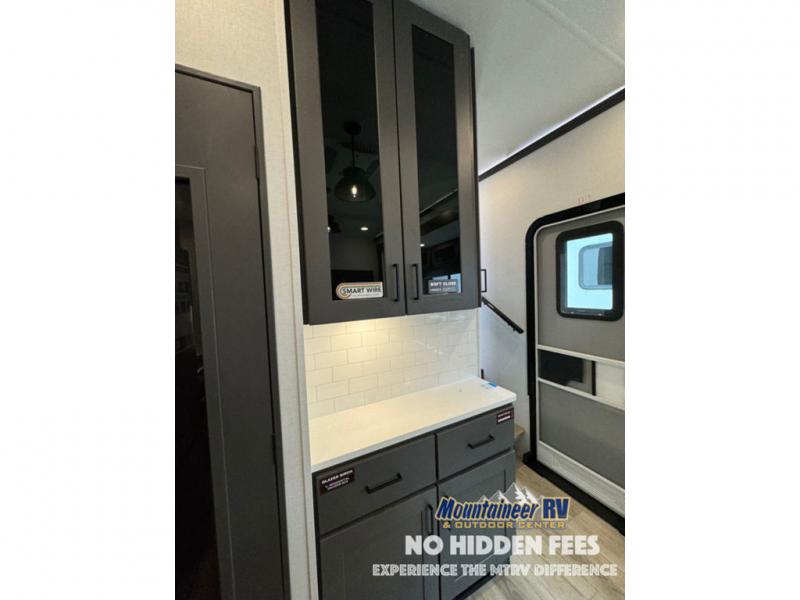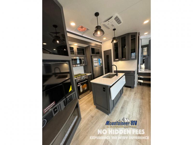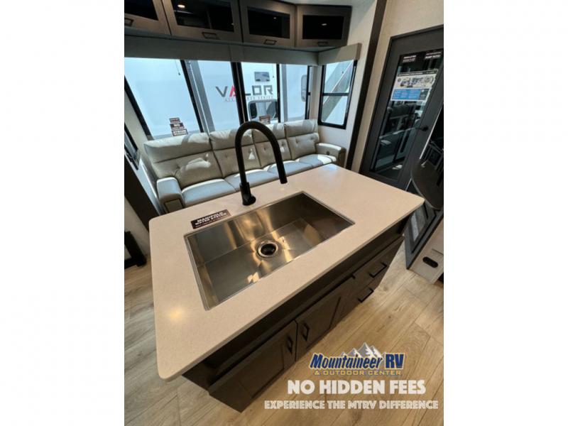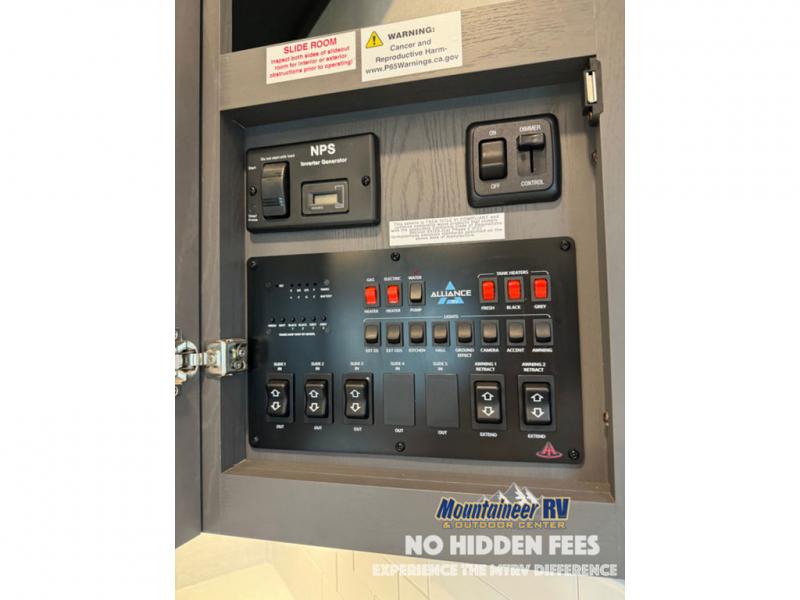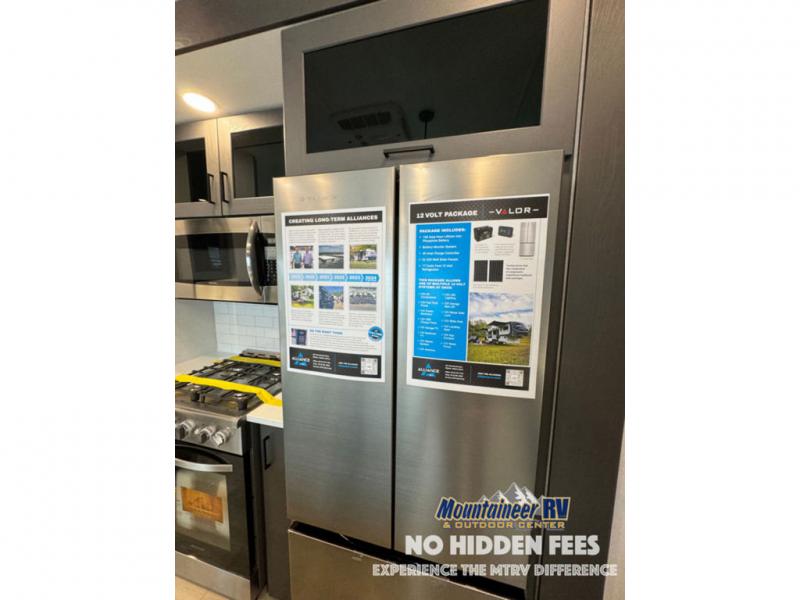 You can bring your toys with you wherever you go with any one of these Alliance RV Valor toy hauler fifth wheels! They are adventure-ready with a quality build from the walk on roof with seamless PVC roof covering to the commercial grade vinyl flooring and MorRyde CRE3000 suspension system. The Performance Running Gear package comes with a 101" wide-body benchmark chassis platform, 7,000 lb. Dexter axles, and a space enhancing drop frame storage compartment to pack in all your riding gear. You can even go off-gridding thanks to the Off the Grid Pack that has two 320 watt solar panels, generator prep, a 40 amp charge controller, and a 100 amp hour lithium iron phosphate battery, plus a battery monitor system. Some of the interior comforts you will enjoy are the hardwood cabinet doors and drawers, solid surface kitchen countertops, and commercial grade vinyl flooring with no carpet to make clean up a breeze.