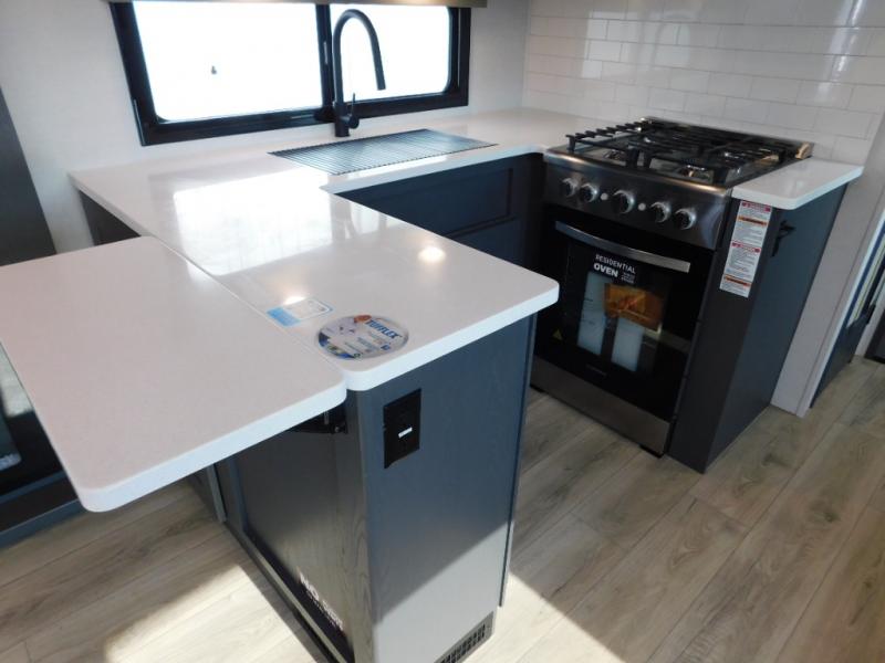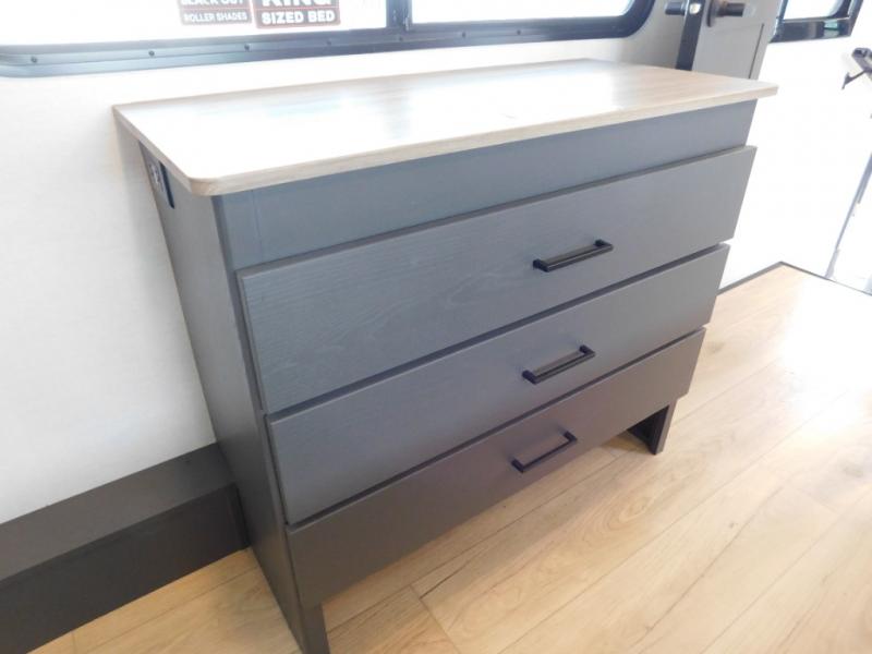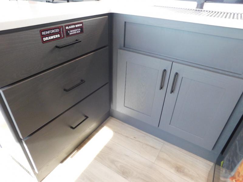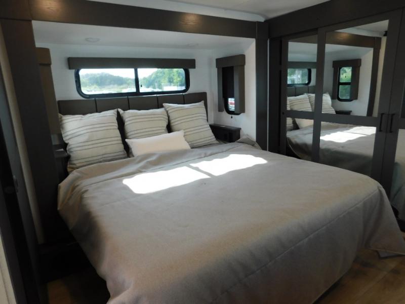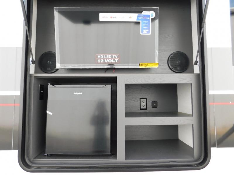You can bring your toys with you wherever you go with any one of these Alliance RV Valor toy hauler fifth wheels! They are adventure-ready with a quality build from the walk on roof with seamless PVC roof covering to the commercial grade vinyl flooring and MorRyde CRE3000 suspension system. The Performance Running Gear package comes with a 101" wide-body benchmark chassis platform, 7,000 lb. Dexter axles, and a space enhancing drop frame storage compartment to pack in all your riding gear. You can even go off-gridding thanks to the Off the Grid Pack that has two 400 watt solar panels, generator prep, a 40 amp charge controller, and a 100 amp hour lithium iron phosphate battery. Some of the interior comforts you will enjoy are the hardwood cabinet doors and drawers, solid surface kitchen countertops, and commercial grade vinyl flooring with no carpet to make clean up a breeze. The Valor toy haulers are also the Masters of 12 Volt with USB charging station throughout, a stainless steel refrigerator, and more 12 volt features to make camping hassle-free!