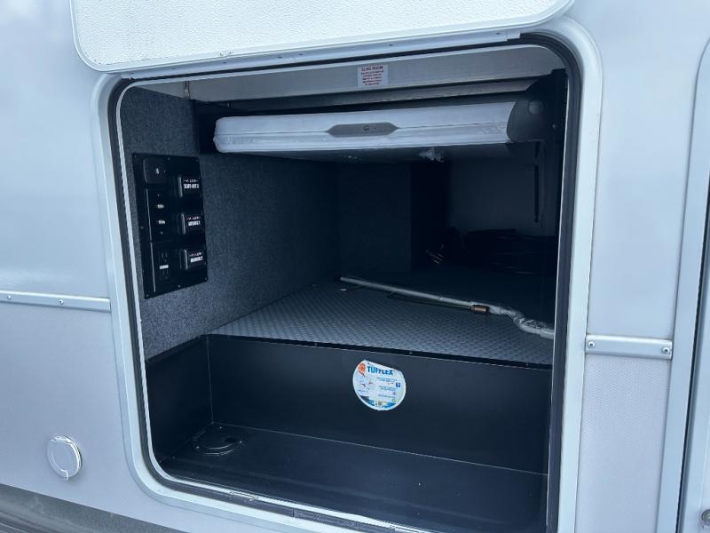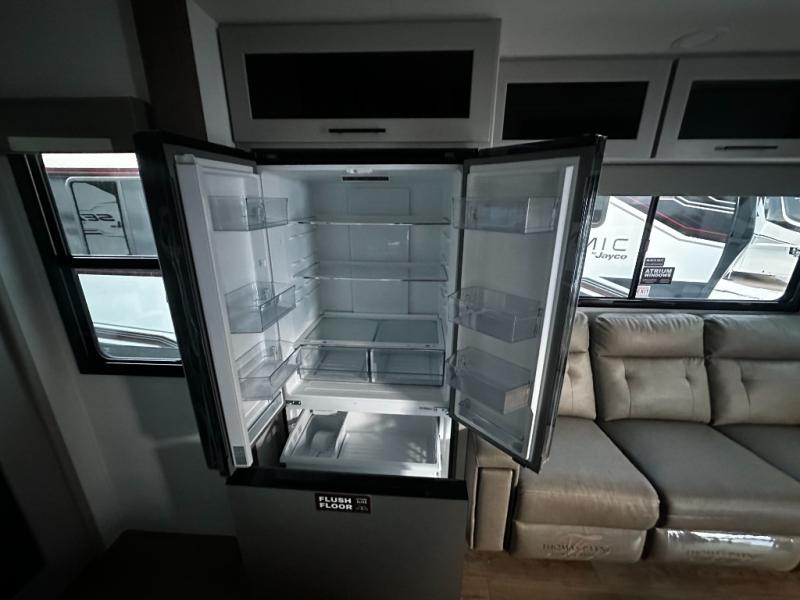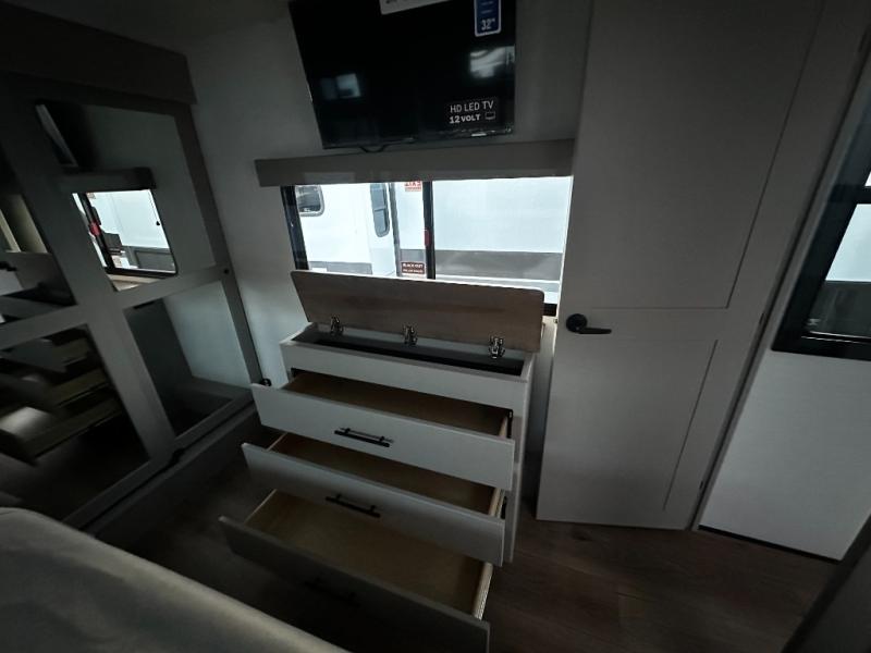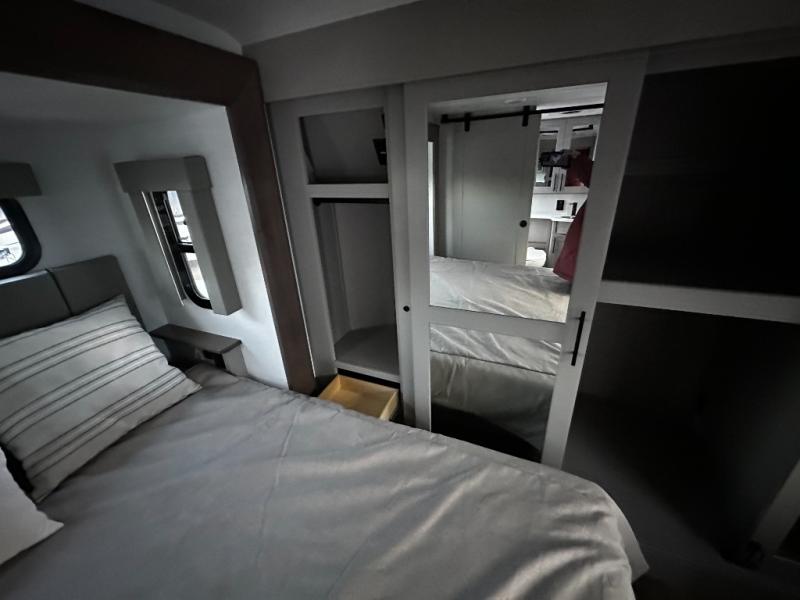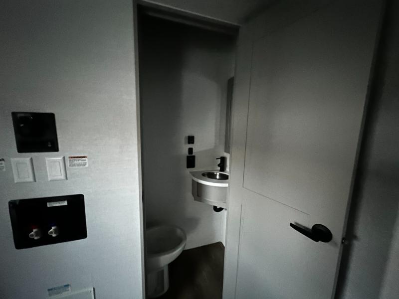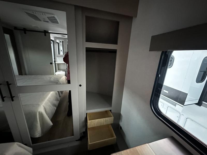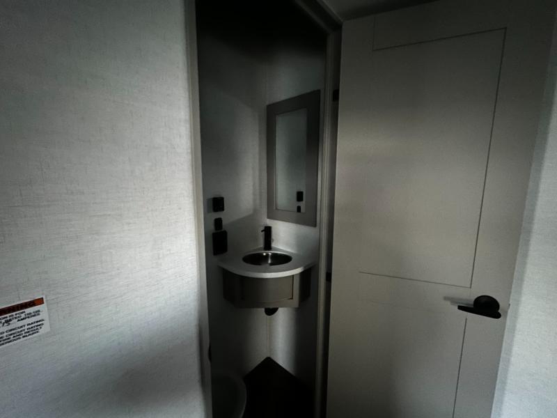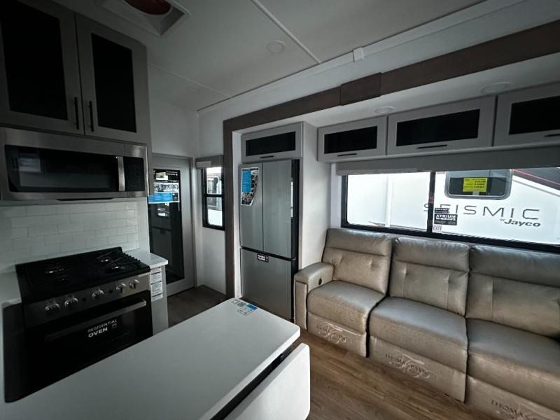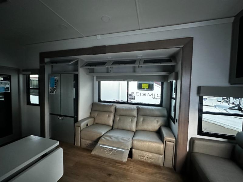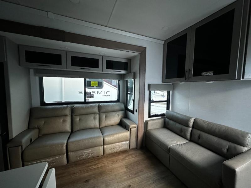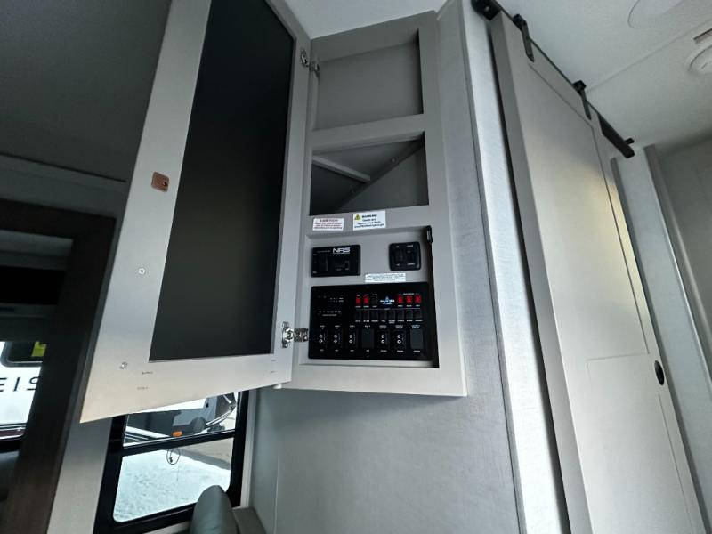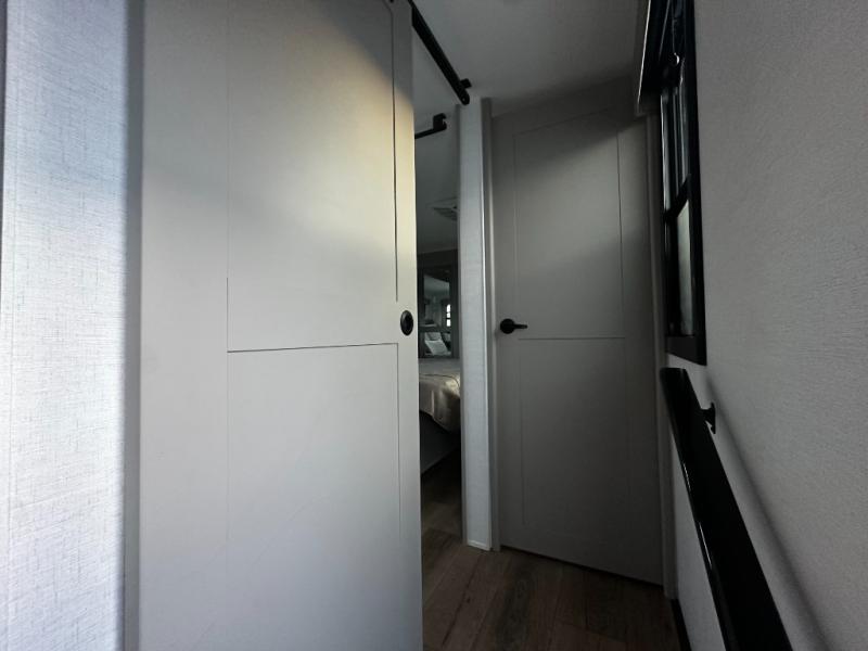 There is room for your off-road toys and the whole family in this toy hauler! The bath and a half makes life more convenient and the dual entry doors create a smooth flow of traffic in and out of the unit. Aside from 13' of garage space and an entrance/exit door, there are also opposing HappiJac sofas with a queen bed above them, a loft that opens to the garage, and a half bathroom. The chef can prepare their best meals with the four burner cooktop while two others sit at the flip up counter with two bar stools. After a fun day on the trails, wash up in the full bathroom with the 48" x 30" shower, grab your pajamas from the front wardrobe or flip top dresser in the front private bedroom then relax on one of the two sofas by the fireplace and 50" HDTV!