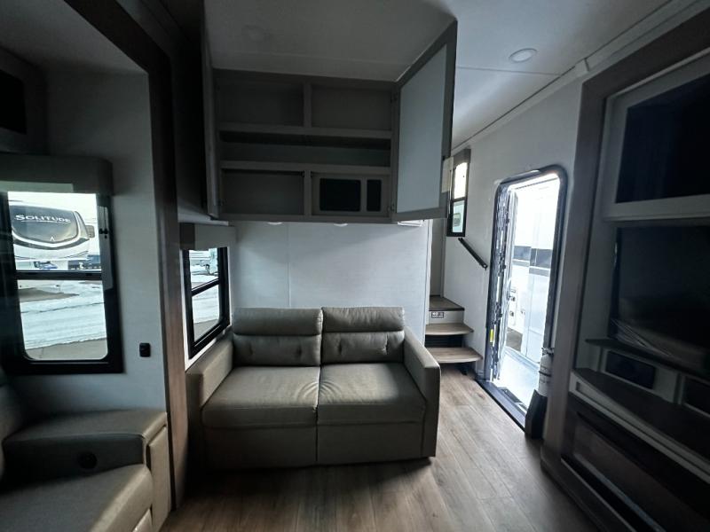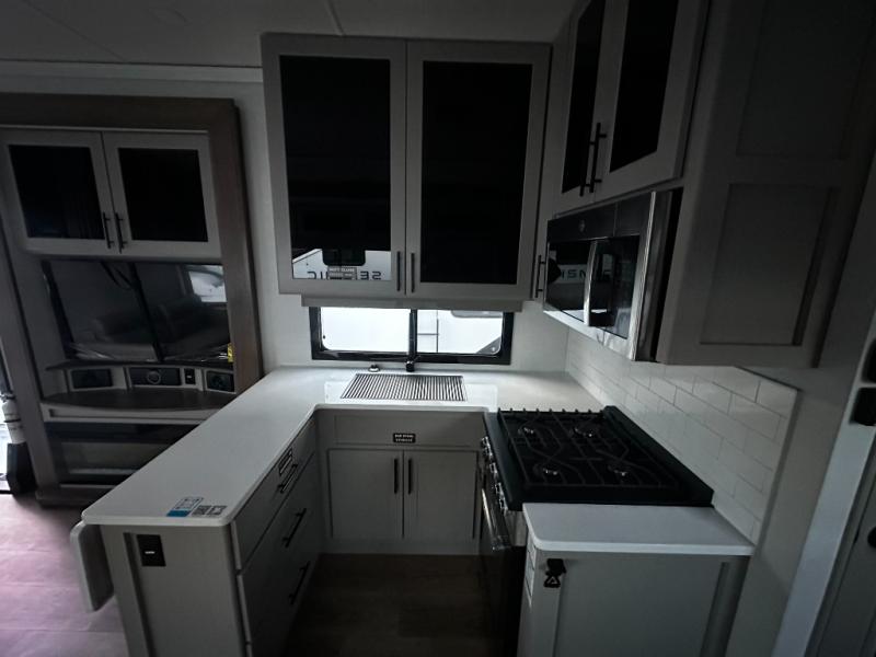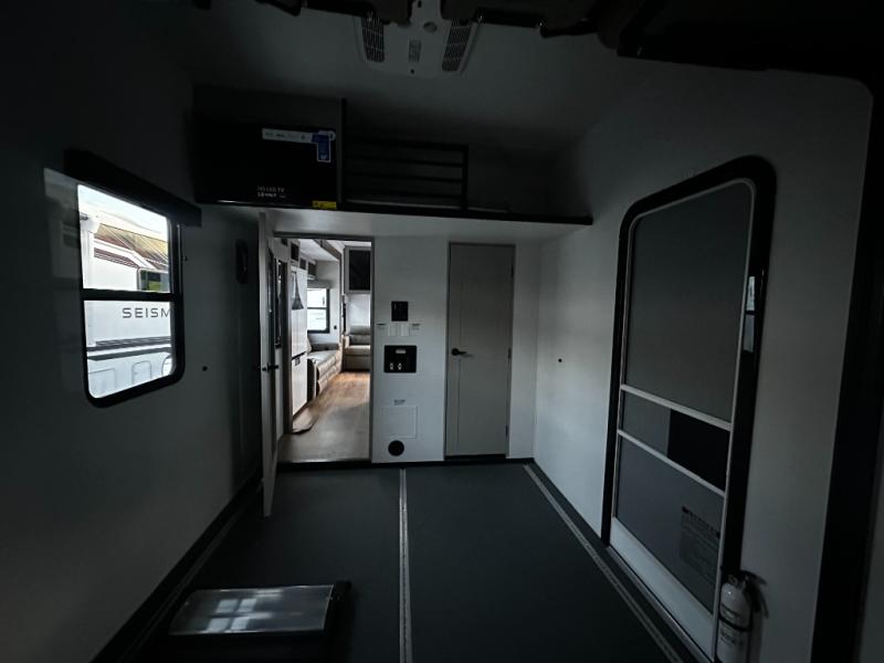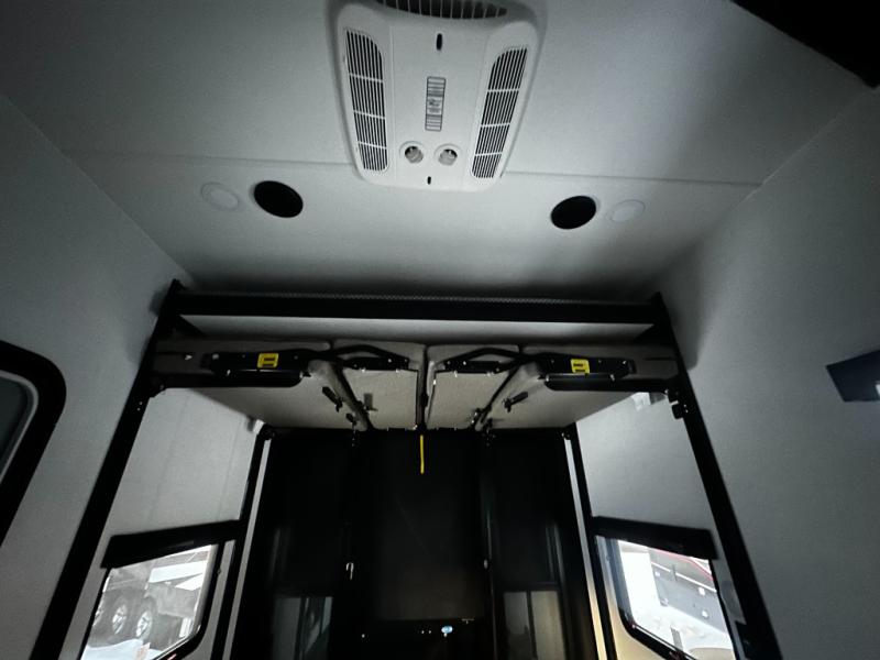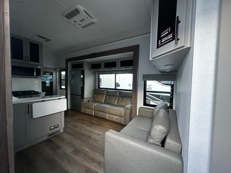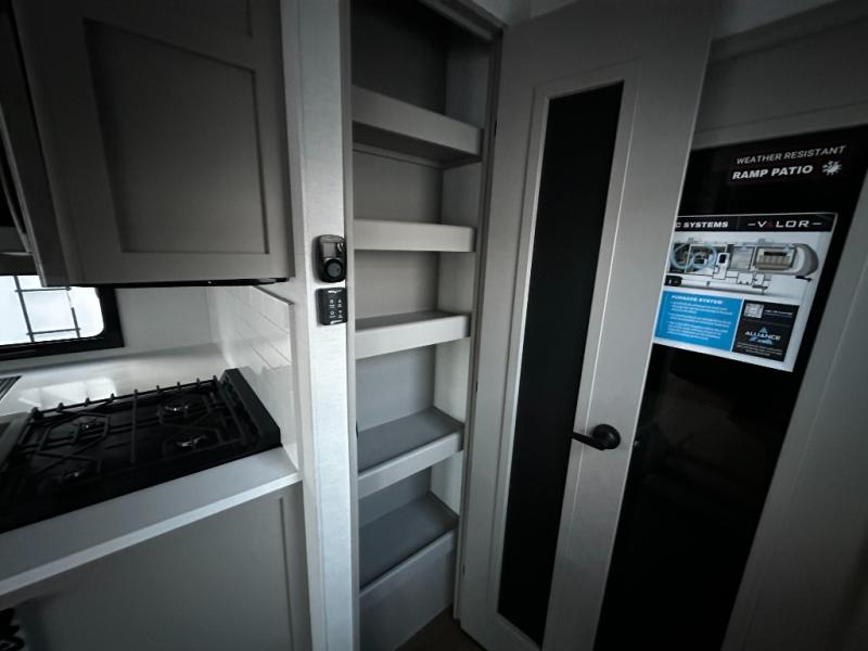 You can bring your toys with you wherever you go with any one of these Alliance RV Valor toy hauler fifth wheels! They are adventure-ready with a quality build from the walk on roof with seamless PVC roof covering to the commercial grade vinyl flooring and MorRyde CRE3000 suspension system. The Performance Running Gear package comes with a 101" wide-body benchmark chassis platform, 7,000 lb. Dexter axles, and a space enhancing drop frame storage compartment to pack in all your riding gear. You can even go off-gridding thanks to the Off the Grid Pack that has two 400 watt solar panels, generator prep, a 40 amp charge controller, and a 100 amp hour lithium iron phosphate battery. Some of the interior comforts you will enjoy are the hardwood cabinet doors and drawers, solid surface kitchen countertops, and commercial grade vinyl flooring with no carpet to make clean up a breeze. The Valor toy haulers are also the Masters of 12 Volt with USB charging station throughout, a stainless steel refrigerator, and more 12 volt features to make camping hassle-free!
