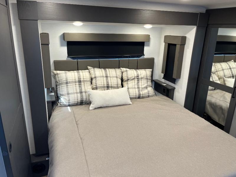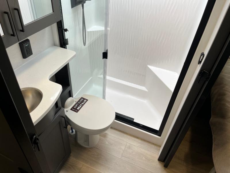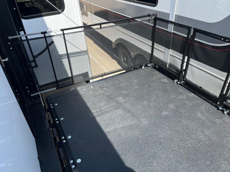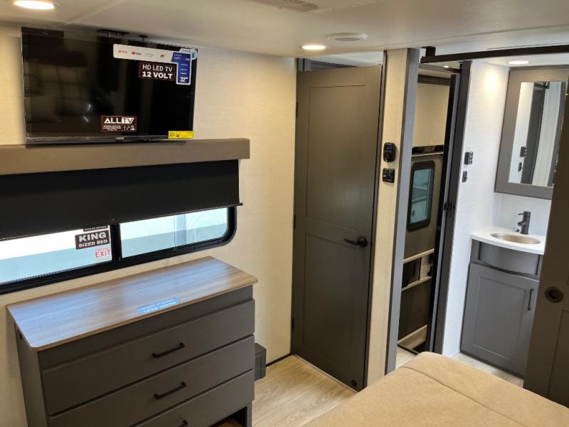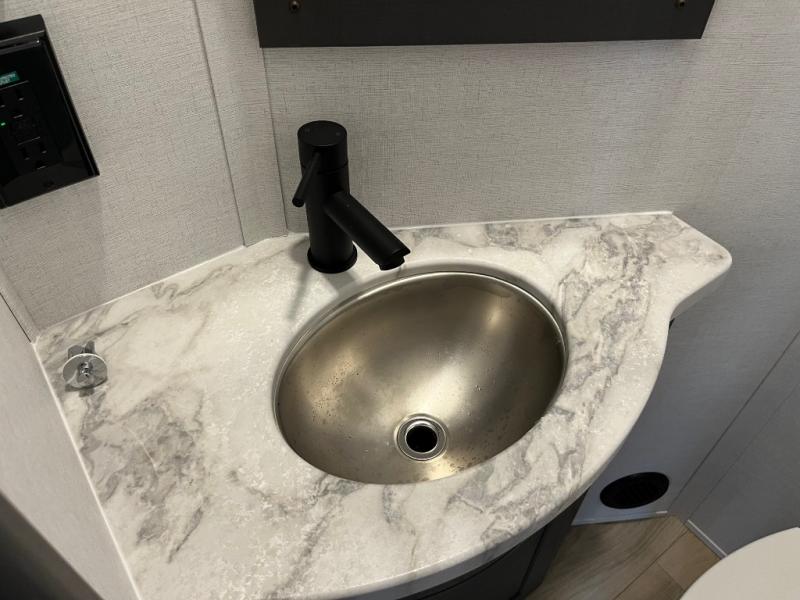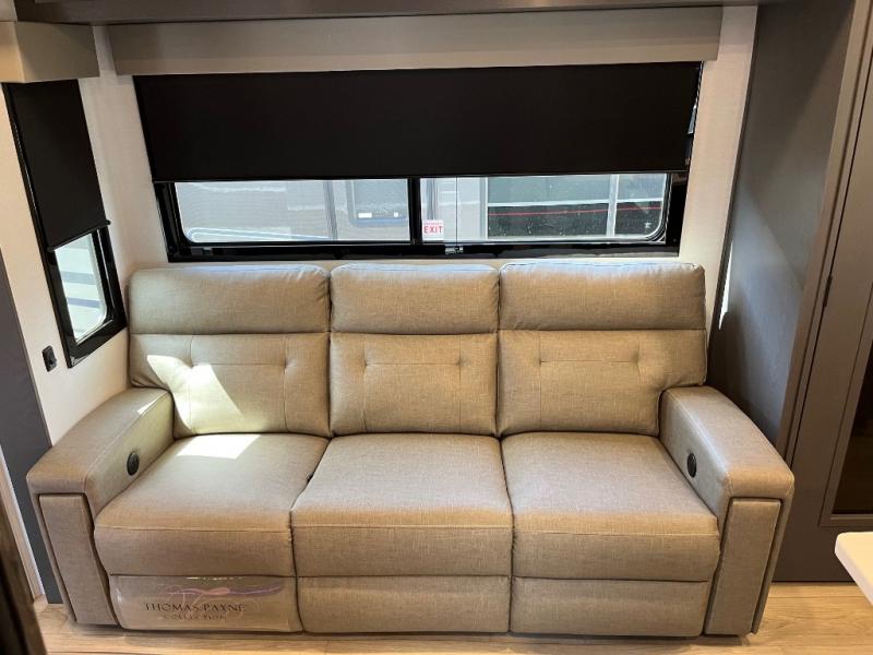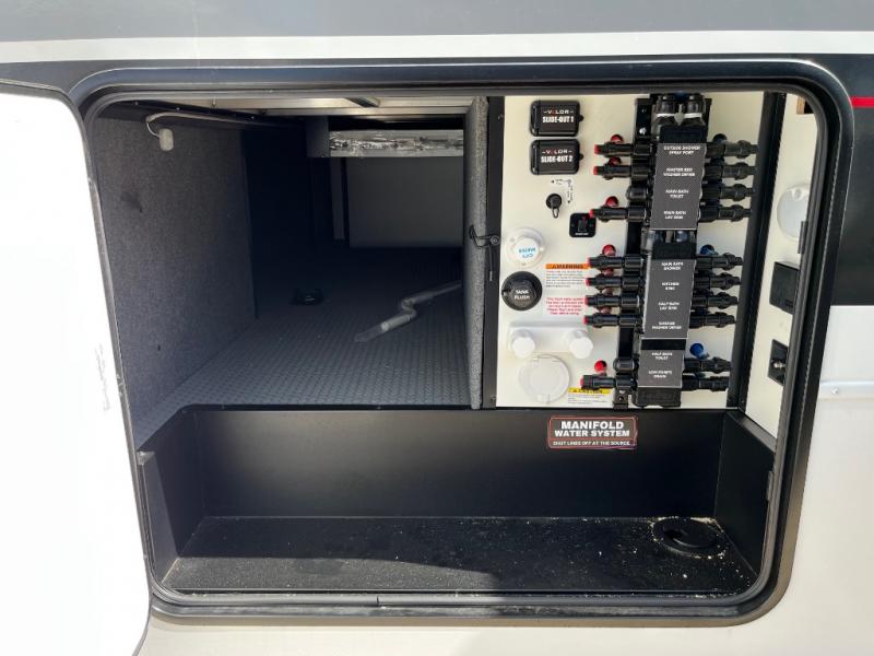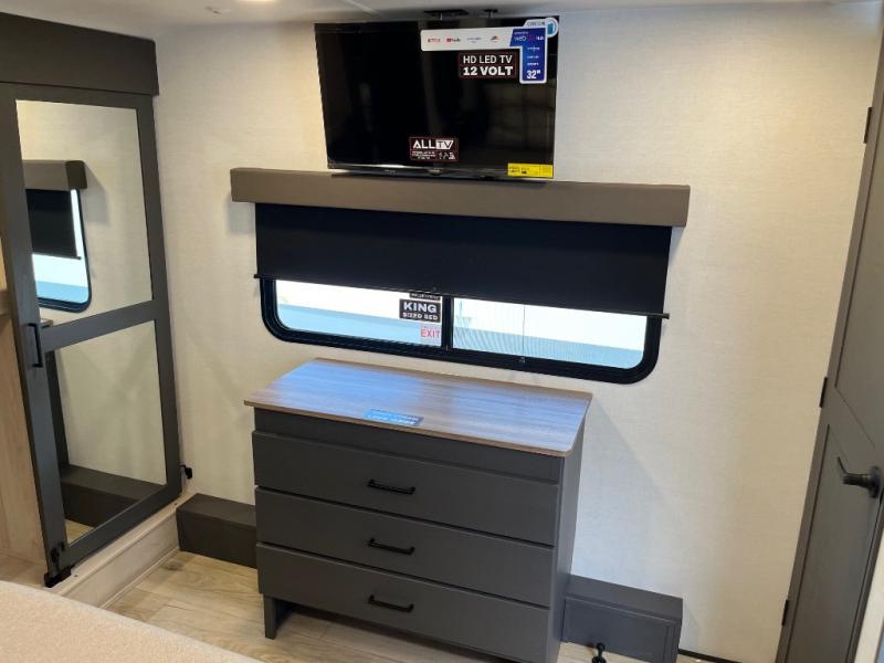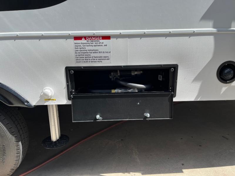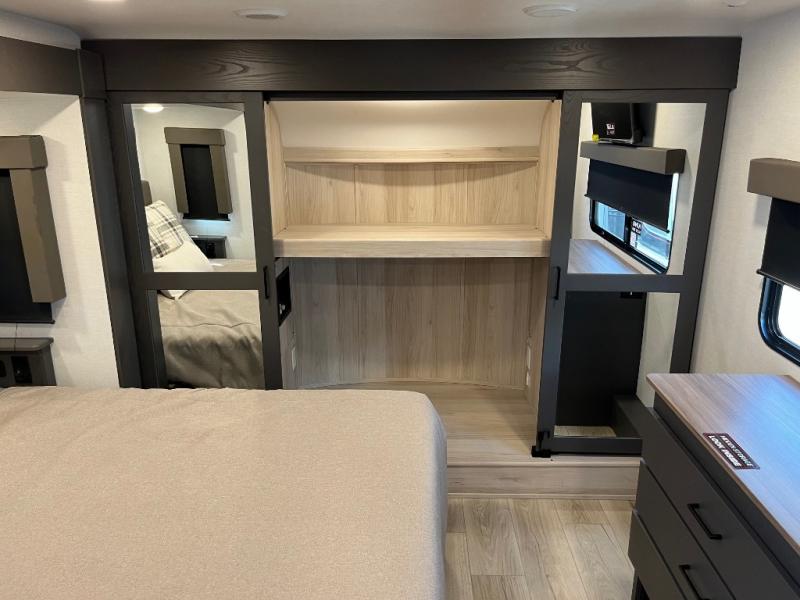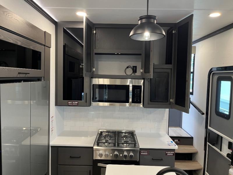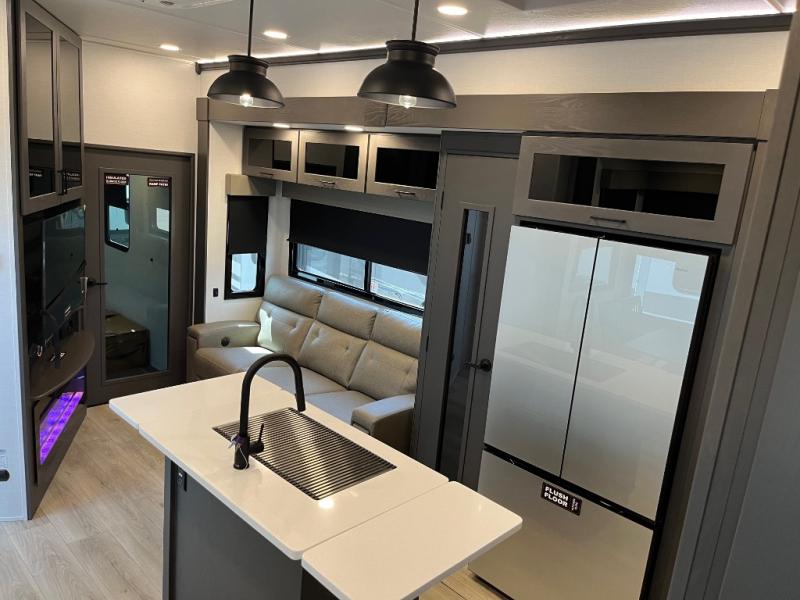 You can bring your toys with you wherever you go with any one of these Alliance RV Valor toy hauler fifth wheels! They are adventure-ready with a quality build from the walk on roof with seamless PVC roof covering to the commercial grade vinyl flooring and MorRyde CRE3000 suspension system. The Performance Running Gear package comes with a 101" wide-body benchmark chassis platform, 7,000 lb. Dexter axles, and a space enhancing drop frame storage compartment to pack in all your riding gear. You can even go off-gridding thanks to the Off the Grid Pack that has two 400 watt solar panels, generator prep, a 40 amp charge controller, and a 100 amp hour lithium iron phosphate battery. Some of the interior comforts you will enjoy are the hardwood cabinet doors and drawers, solid surface kitchen countertops, and commercial grade vinyl flooring with no carpet to make clean up a breeze. The Valor toy haulers are also the Masters of 12 Volt with USB charging station throughout, a stainless steel refrigerator, and more 12 volt features to make camping hassle-free!