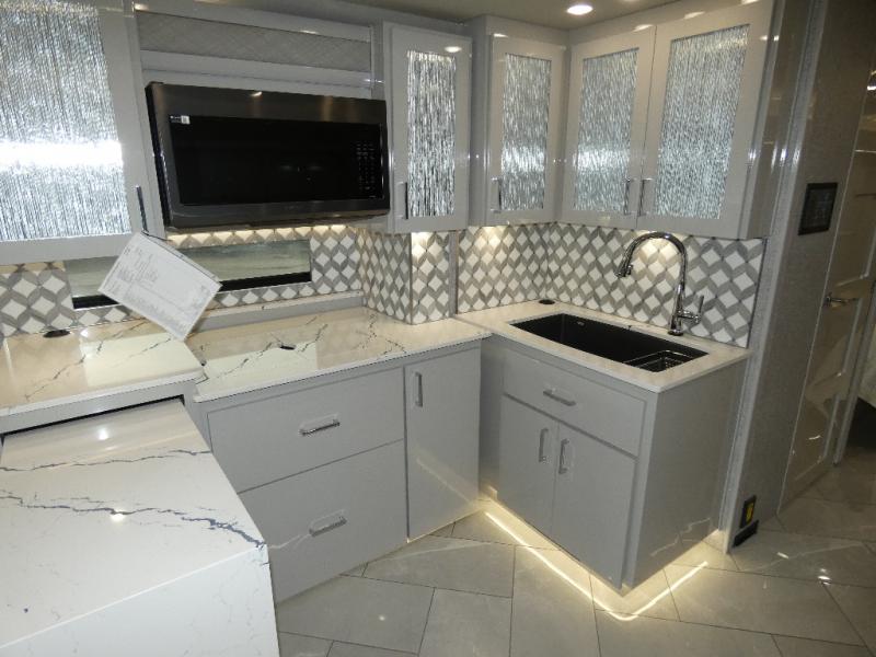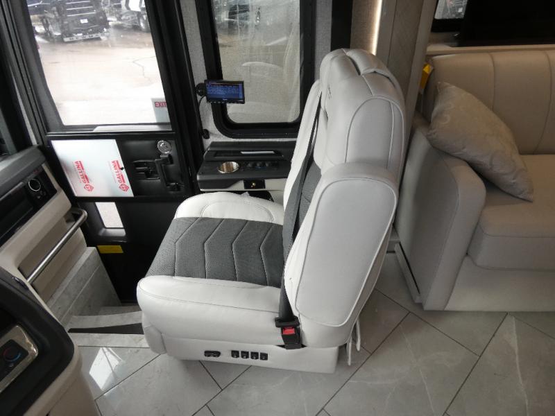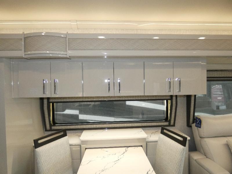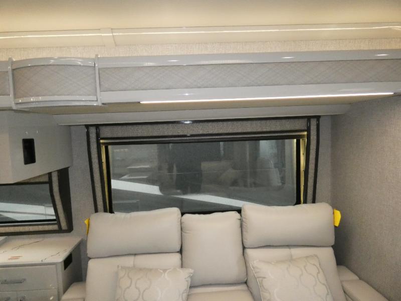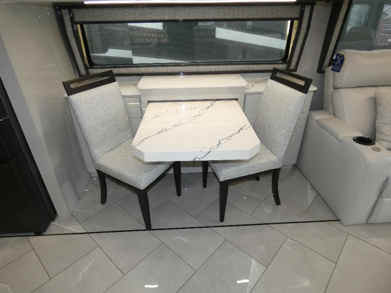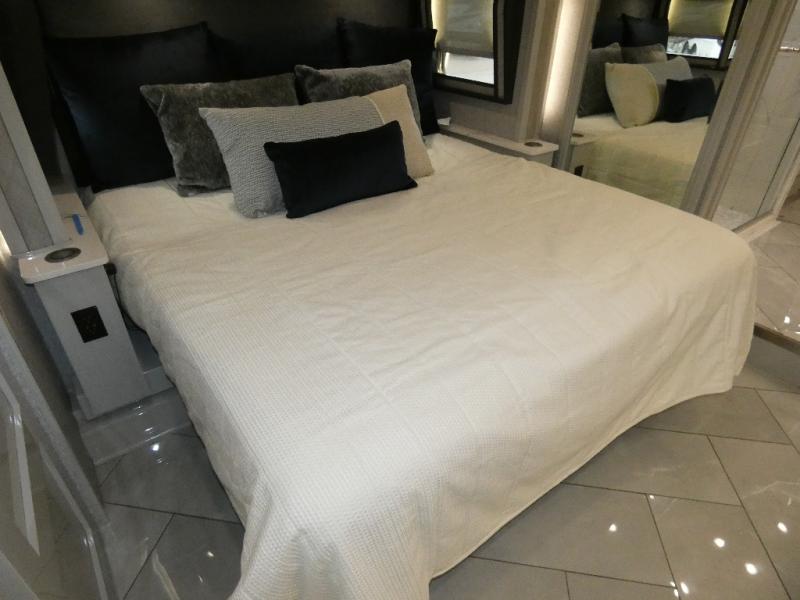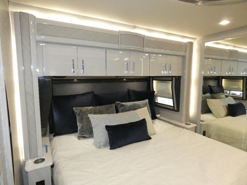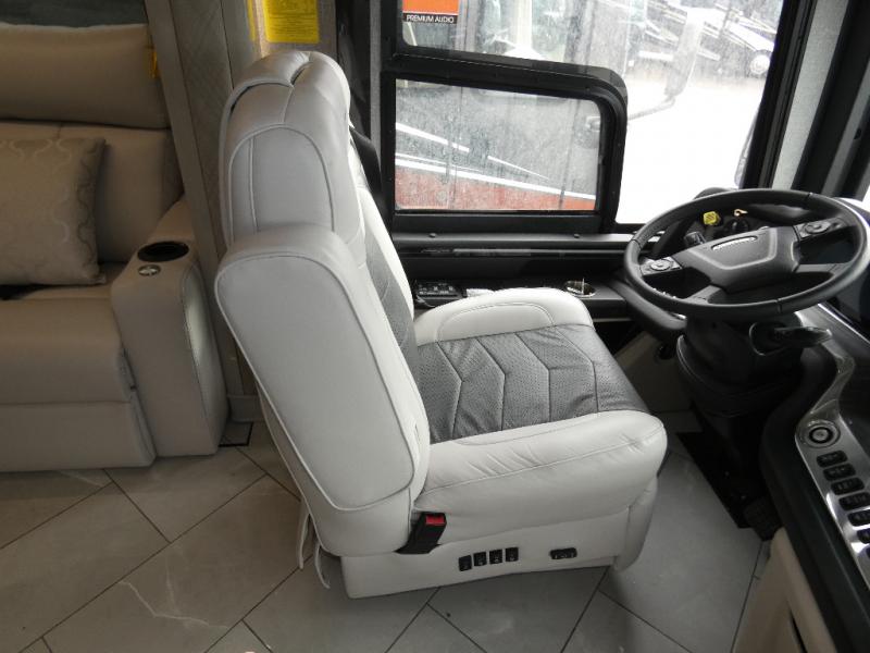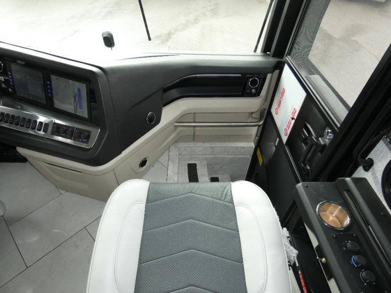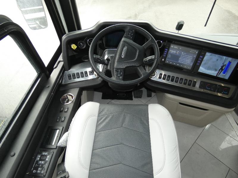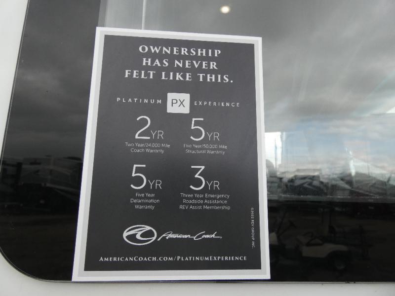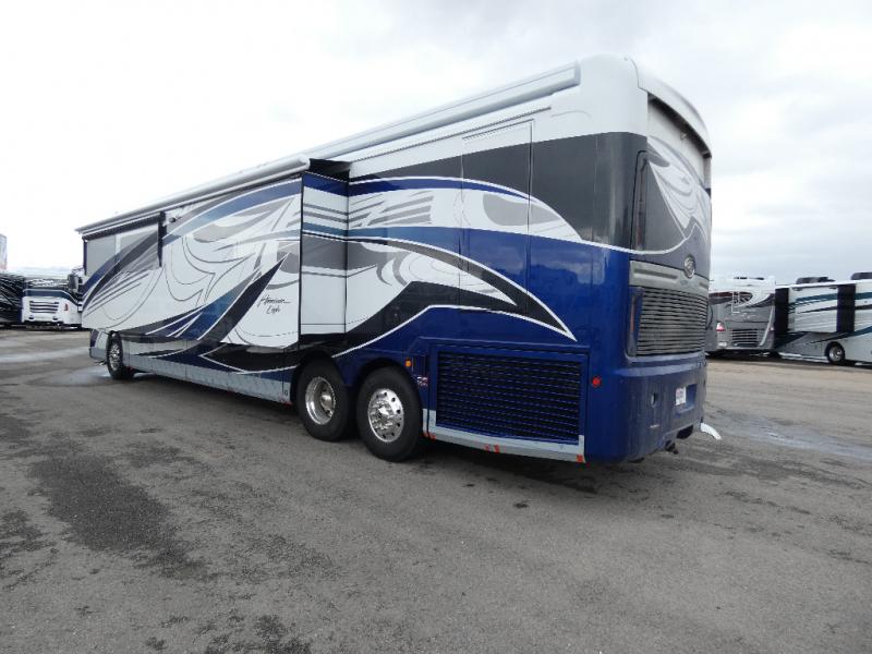 Each one of these American Coach American Eagle Class A diesel motorhomes are powered by a Cummins ISX15 engine with 605 horsepower and 1,950 lb./ft. of torque, plus they are held up by a powder-coated steel Liberty Bridge beam chassis for added durability. The Powerlock system comes with an interlocking floor, walls, and roof, and the premium gel exterior Vetrosina fiberglass skin is a no-wood substrate which means water won't rot away your unit. The American Eagle includes a RoadWatch safety system with collision mitigation, roll stability control, integrated Mobileye, and more safety features for your peace of mind. There is also an Allison 4000 MH 6-speed transmission with electronic shift control the driver is sure to appreciate, plus captain's seats with heat and air-cool, 8-way power, lumbar, and power footrests! Inside, you will find Cambria Quartz countertops, a Blanco kitchen sink, porcelain tile flooring, hardwood cabinetry, and many more luxurious features that will make your RV feel more like a resort on wheels. Come choose your favorite model today!
