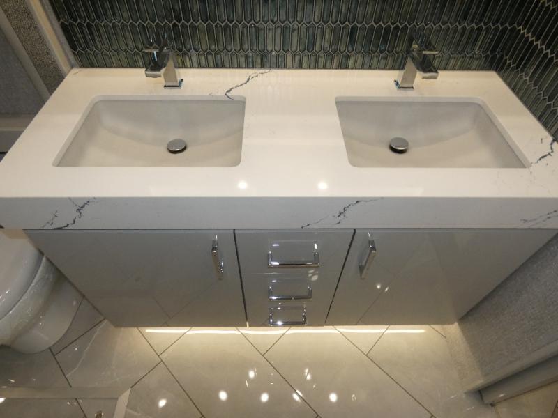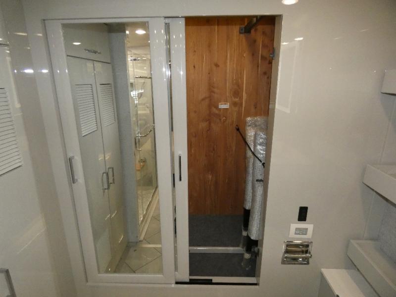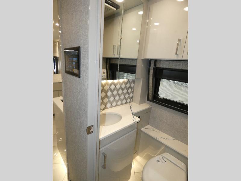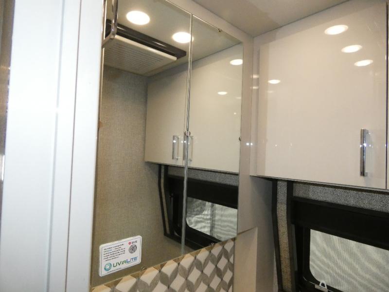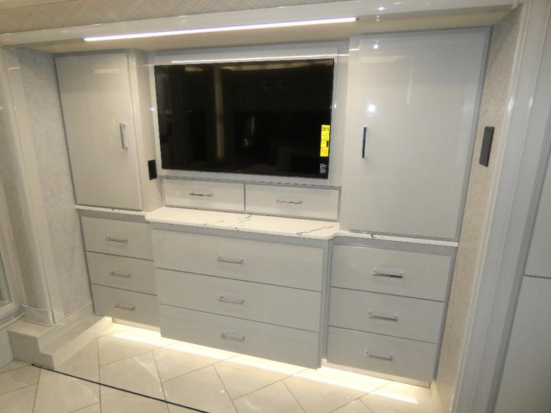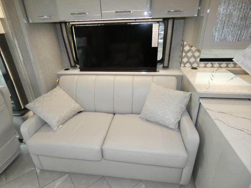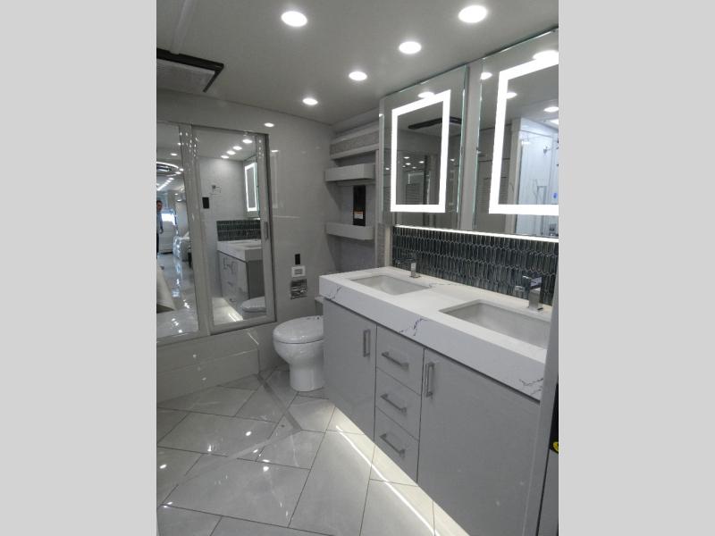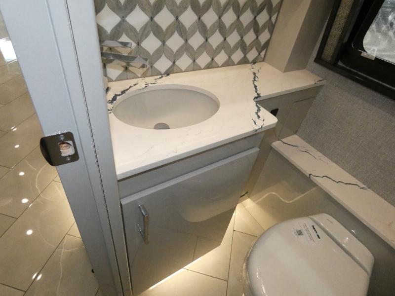 This motorhome has everything you could possibly need for your next road trip! From the full rear bath with dual rectangle sinks to the exterior entertainment center with an LED Smart TV, you will be impressed! You will also appreciate a spacious wardrobe with hardwood doors to store your clothes and a stackable Samsung washer and dryer to make full-time easier than ever. The kitchen has everything you need and plenty of countertop space to prepare a delicious home-cooked meal, and there is a residential refrigerator to store any leftovers. When mother nature rains on your parade, you can either relax on the sofa or the theater seats to watch a movie on the LED televator TV or head to the master suite to watch a movie on the 4K LED TV while lying on the encore series king memory foam mattress!