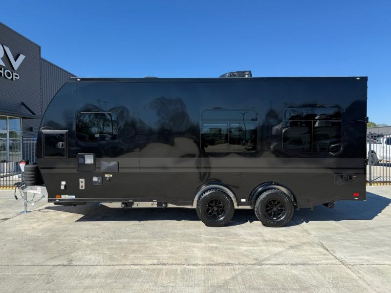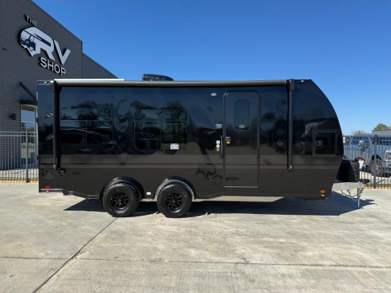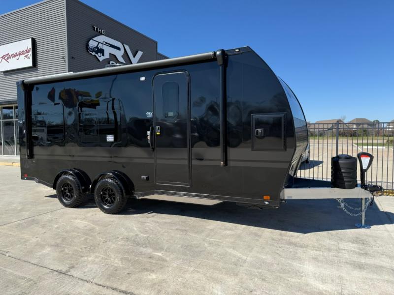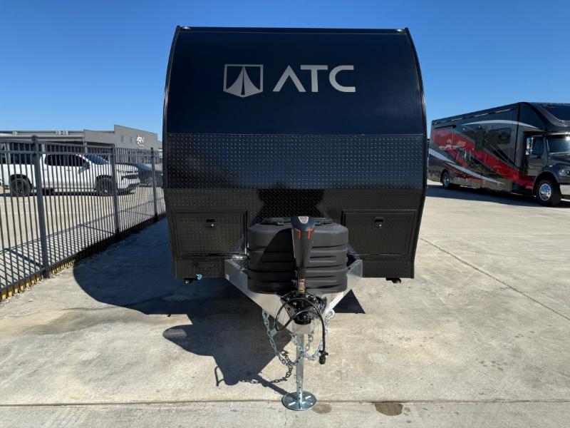With any PLA 450 toy hauler travel trailer by ATC Trailers, you will enjoy lightweight towing and a configurable garage space for your toys, gear, and more! The all-aluminum and composite construction features no wood so you won't have to worry about rot, and the All-Weather Protection Package means you can extend your camping season. There is a 200-watt solar panel with a solar port, a heated lithium battery, plus 12V outlets to keep your adventures going. Outside, you'll find storage for your gear, a power awning with a light strip, sleek frameless dual pane tinted windows, and more convenient features. The interior is just as accommodating with its decorative backsplash, configurable furniture track system, blackout roller shades, and residential solid surface countertops!