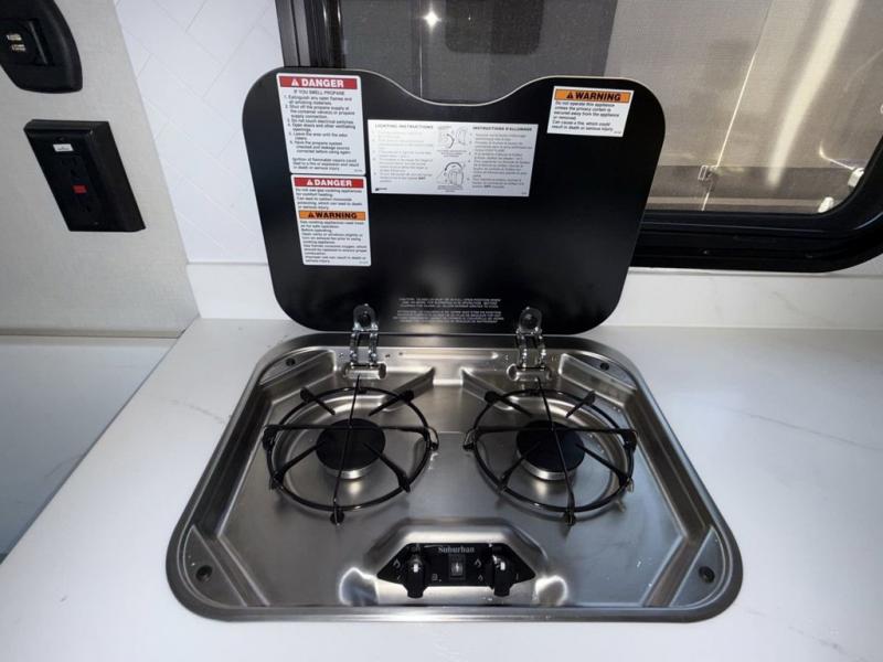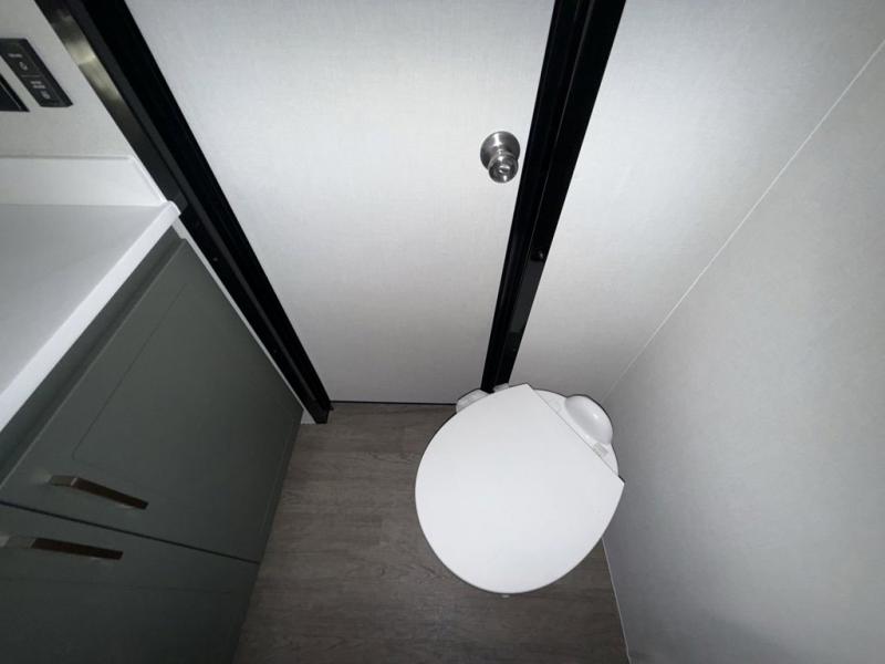 Time spent in this toy hauler will be time well spent! There is 14' 1" total garage space for your toys plus a cableless rear ramp door for easy unloading. You can whip up a meal on the LP two burner cooktop or in the convection microwave when you get back from trail riding, and the 10 cu. ft. 12V refrigerator will keep your food fresh. There is also a dinette table with four folding chairs where you can dine together. A full bath lets you clean up before bed, and you'll find a front private bedroom with a queen bed slide for more space and comfort, along with a front wardrobe for your clothes and shoes!