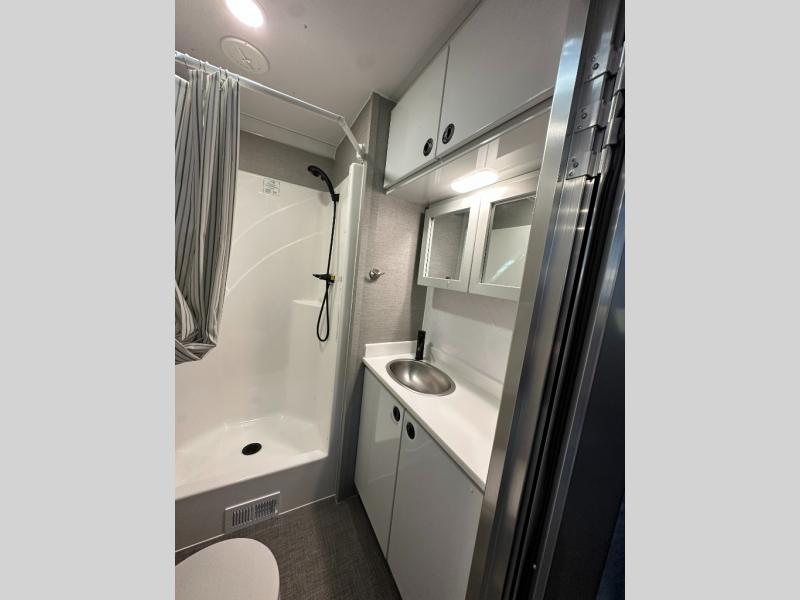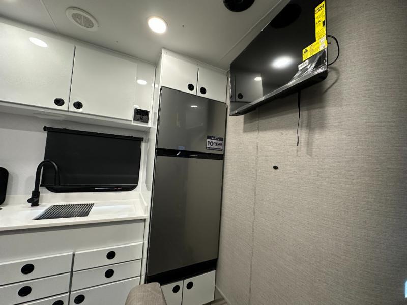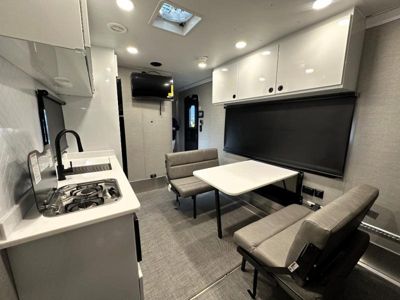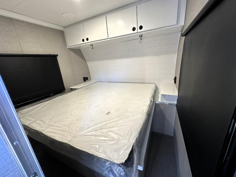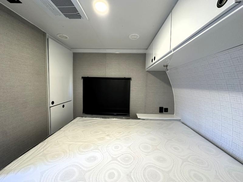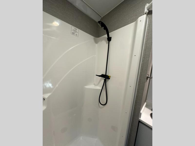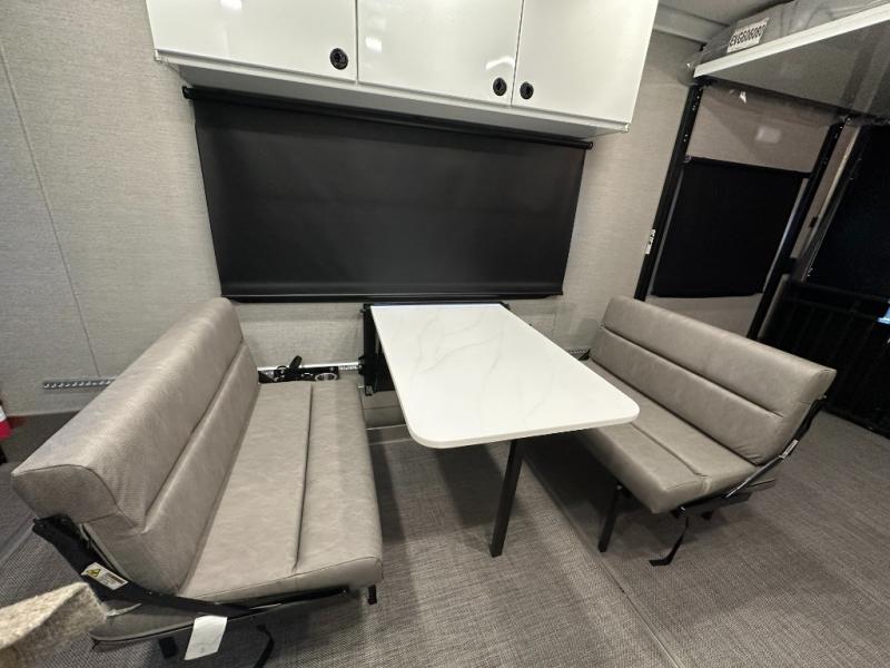 You won't want to camp any other way once you step inside this toy hauler! It has a 15' 10" total garage space with 5,000 lb. tie downs in the floor so you can be sure your toys will arrive safely. Once you have reached your destination, set up the Happijac bed, sofa sleeper, and dinette with benches for a quick afternoon nap or start making dinner with the flush mount two burner cooktop and oven. After a fun time on the trails rinse the mud out of your hair in the full bathroom with the one piece fiberglass shower with an Extend-A-Shower and curtain, plus there is a full length mirror on the door to make sure you got it all out. Start each morning feeling recharged after sleeping on the residential queen bed with storage and USB power outlets on either side for your phone to recharge at the same time!