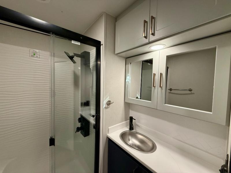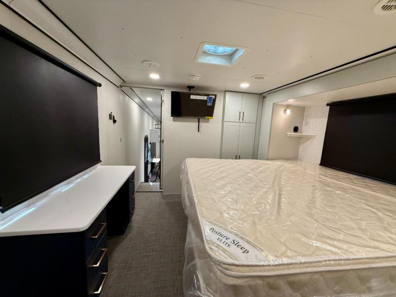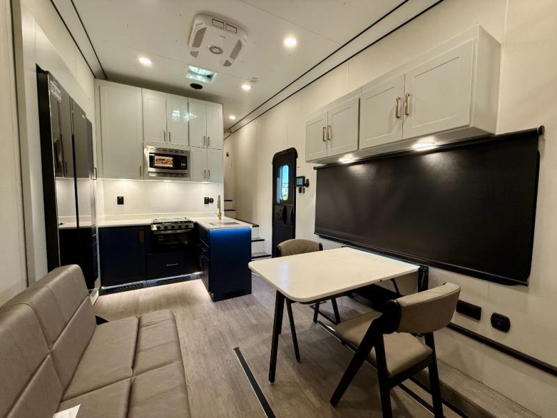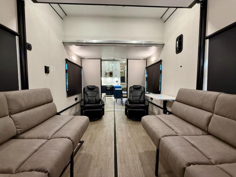 INVOICE SALE!!! 2025 ATC PLA 750 4419 in Charcoal with Nautical Blue Cabinets! ENERGY PACKAGE 3000 (540ah Lithium, 800W Solar, 3kW Inverter)!! 6.0kW Generator! HappiJac bed lift, sofas! Deck Package w Awning! Above and Beyond Package! FULLY LOADED!!