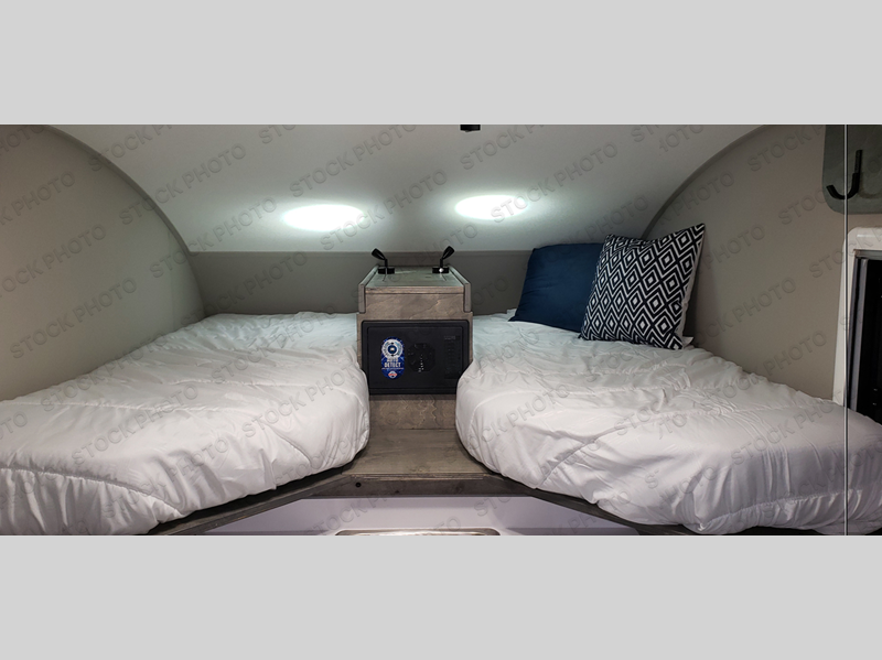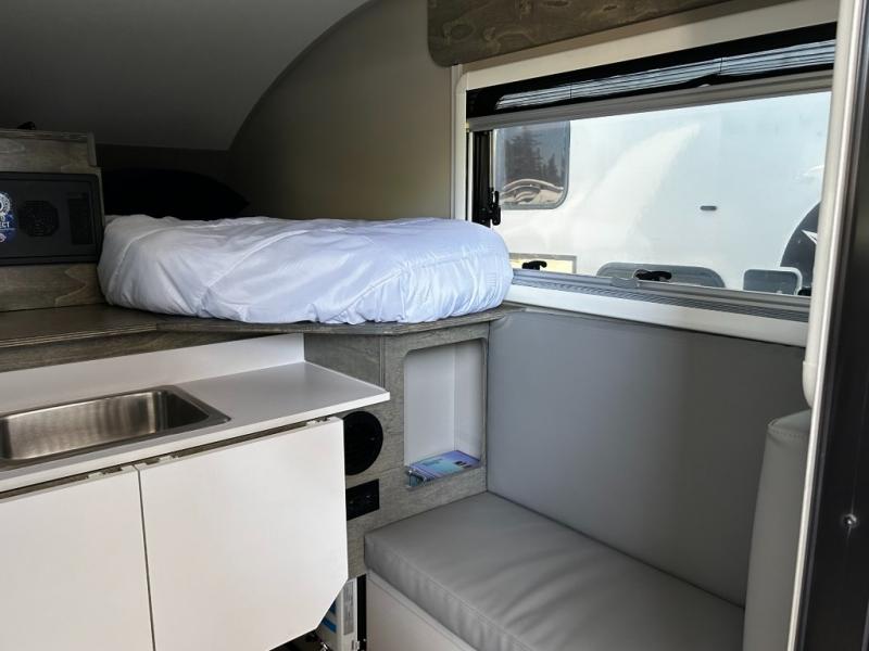 This lightweight truck camper is perfect for the minimalist camper. There is a convenient modular and foldable dinette and a space for an 18L water tank if you choose. The two single beds will provide a great night's rest, and there are multiple storage spaces for your essentials. An optional 10L portable toilet and optional 12V electric cooler can be added to further customize your camper, along with optional lithium and solar power.