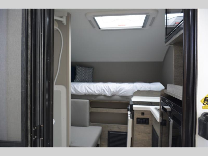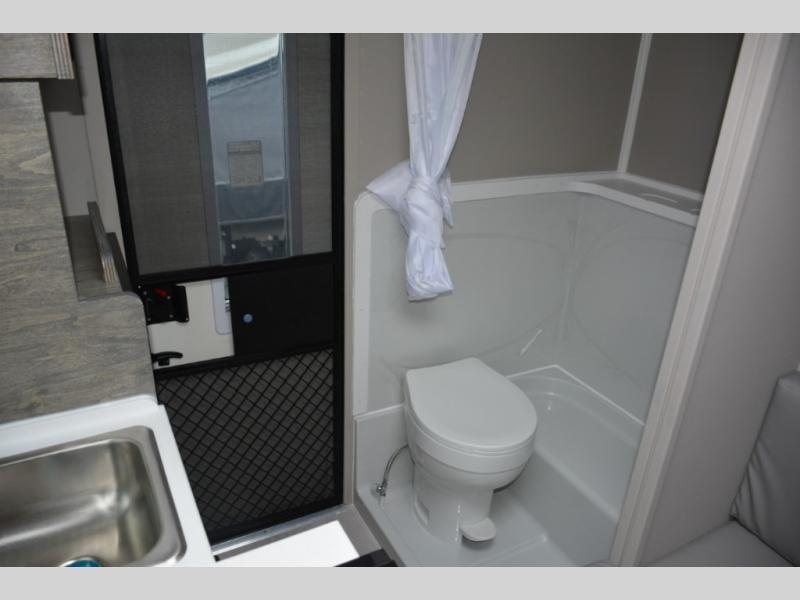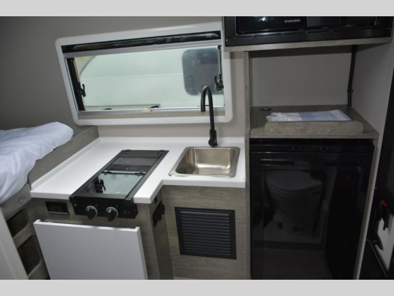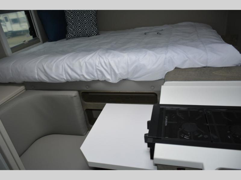 If you're looking to explore the great outdoors and take work with you, this truck camper will get the job done! There is a bench seat with a foldable table that can be used as a dining space or a workspace if needed. The Furrion two burner gas stove and 3. cu. ft. 12V refrigerator will allow you to cook and store food, and an optional microwave can be added if you need to quickly heat up meals. Additional options include an openable skylight, a 200W solar panel and more. You will love having a double-size bed to sleep on each night and a wet bath to get ready for your day.