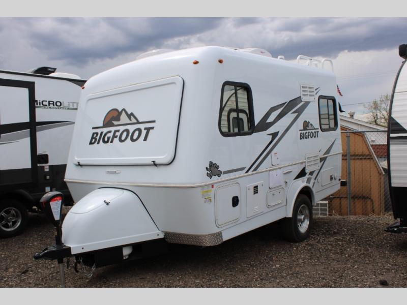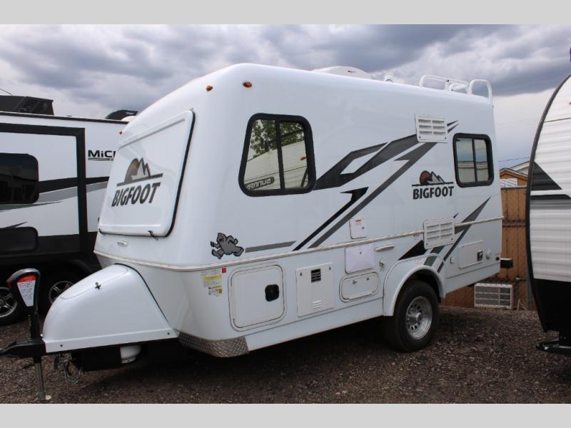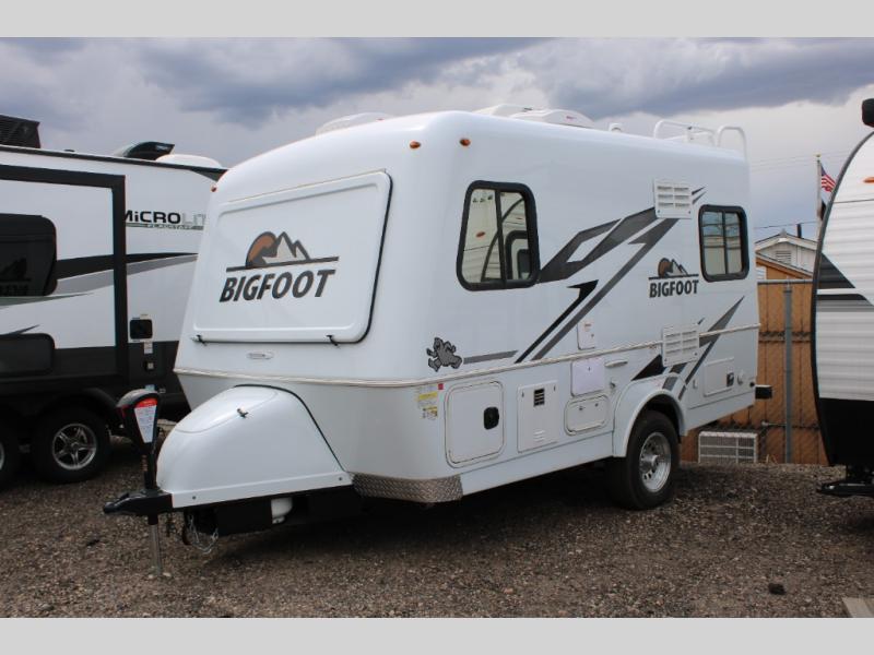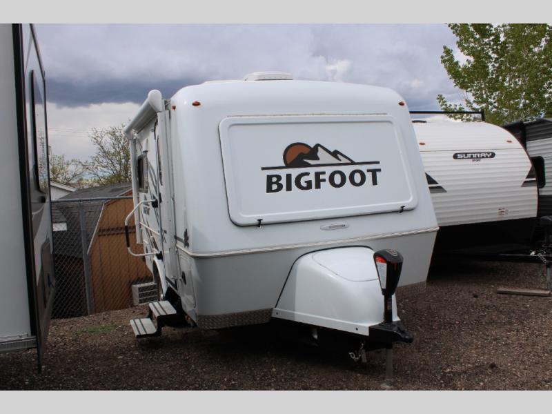 The Bigfoot 2500 Series travel trailers by Bigfoot Industries are constructed with a lightweight two piece fiberglass exterior for durability, plus high-density insulation and thermal pane windows to extend your camping season. The wide track axle provides smooth towing, and you will love how easy it is to set up camp with a power tongue jack and stabilizer jacks. Head inside to find a marine-quality fabric headliner, day/night shades, washable vinyl wall paneling, and stainless steel appliances. For even more comfort and convenience, choose one or more of the available options, like the roof A/C, the solar energy system, or the exterior speakers!