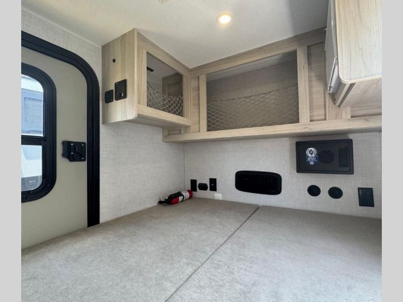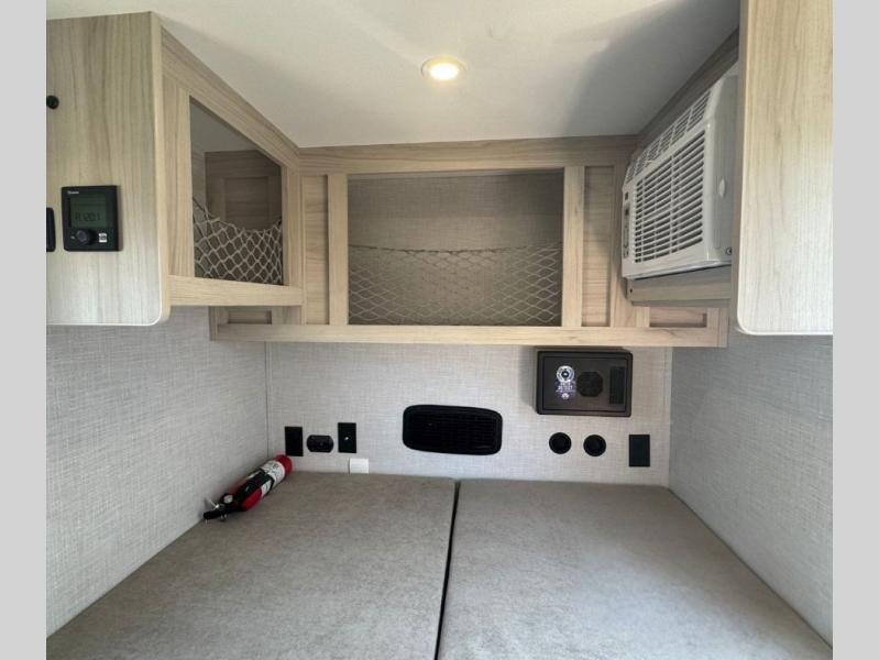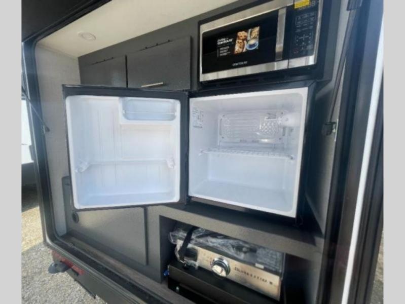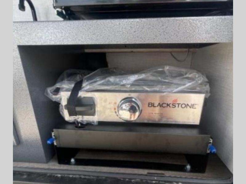 Hitch up and hit the road quick and easy with just about any tow vehicle. This lightweight model is perfect for two with comfy mattresses for sleeping, and plenty of storage. The outside shower allows you to rinse off any evidence of your daily adventure before going to sleep, and the sliding griddle and sink makes it easy to create some hearty camp meals so you can do it all over again the next day! You will appreciate the 14,300 BTU Truma Combi heater and water heater plus 13,500 BTU A/C unit to keep you comfortable even on the hottest summer days.