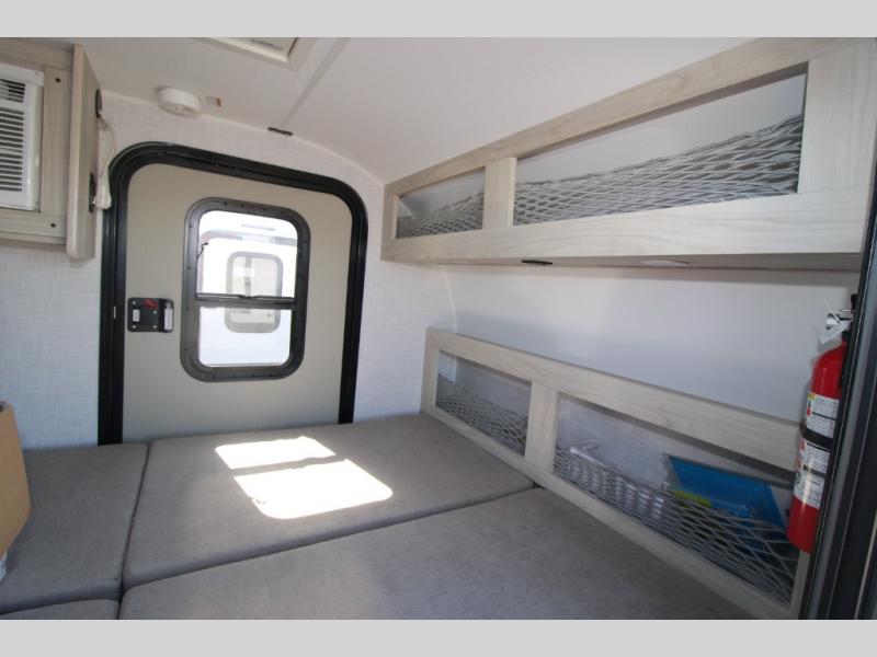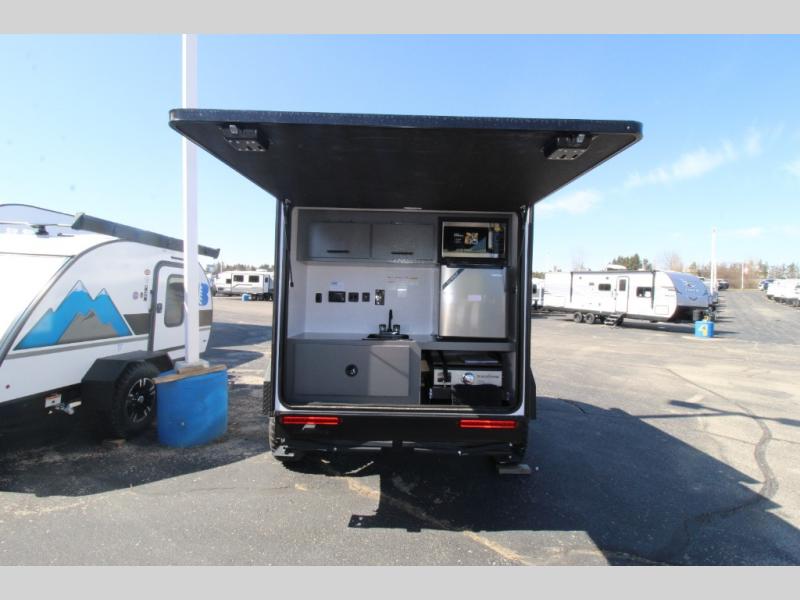 It will be so easy to hitch up and head out in this teardrop trailer! You can sleep two easily since there are comfortable mattresses, and there are storage compartments for your valuables and camp necessities. An outside shower will let you freshen up when you need to, and there is even a portable toilet for added convenience. Within the exterior kitchenette you'll find a microwave, 12V refrigerator and a Blackstone griddle. You'll love the awning included within the Radical Package, along with a high-clearance axle with independent suspension, and Carrera Red Radical graphics!