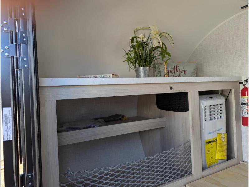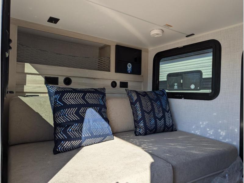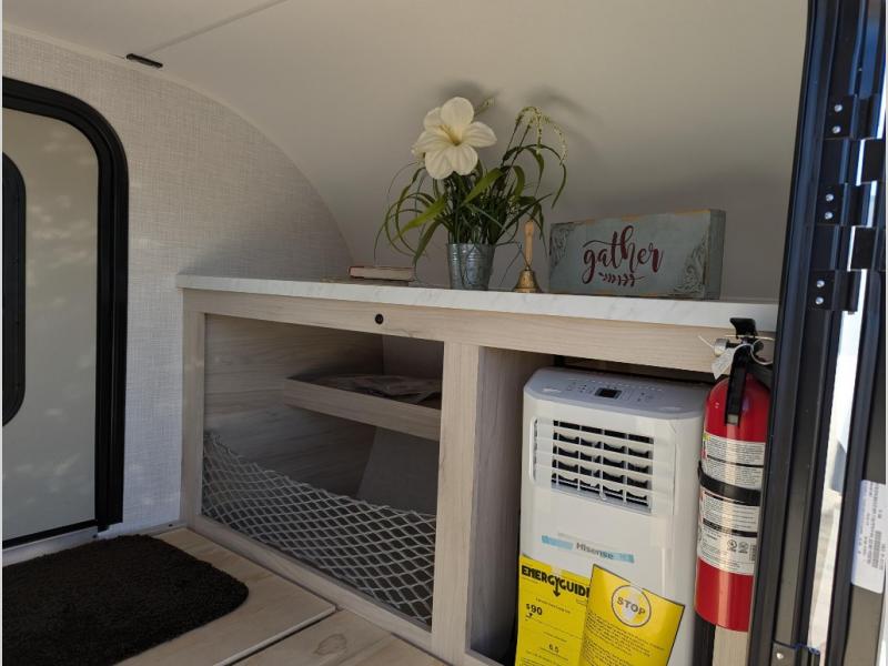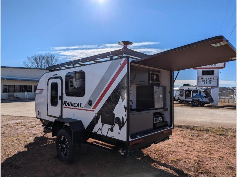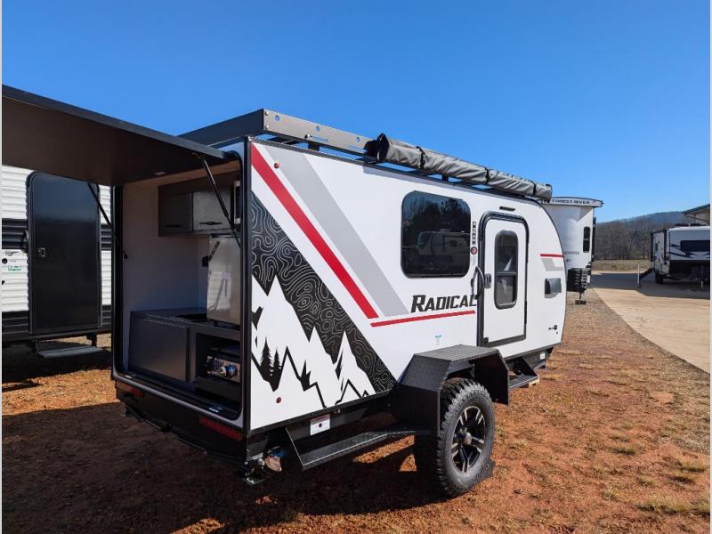 It will be so easy to hitch up and head out in this teardrop trailer! You can sleep two easily since there are comfortable mattresses, and there are storage compartments for your valuables and camp necessities. An outside shower will let you freshen up when you need to, and there is even a portable toilet for added convenience. Within the exterior kitchenette you'll find a microwave, 12V refrigerator and a Blackstone griddle. You'll love the awning included within the Radical Package, along with a high-clearance axle with independent suspension, and Carrera Red Radical graphics!