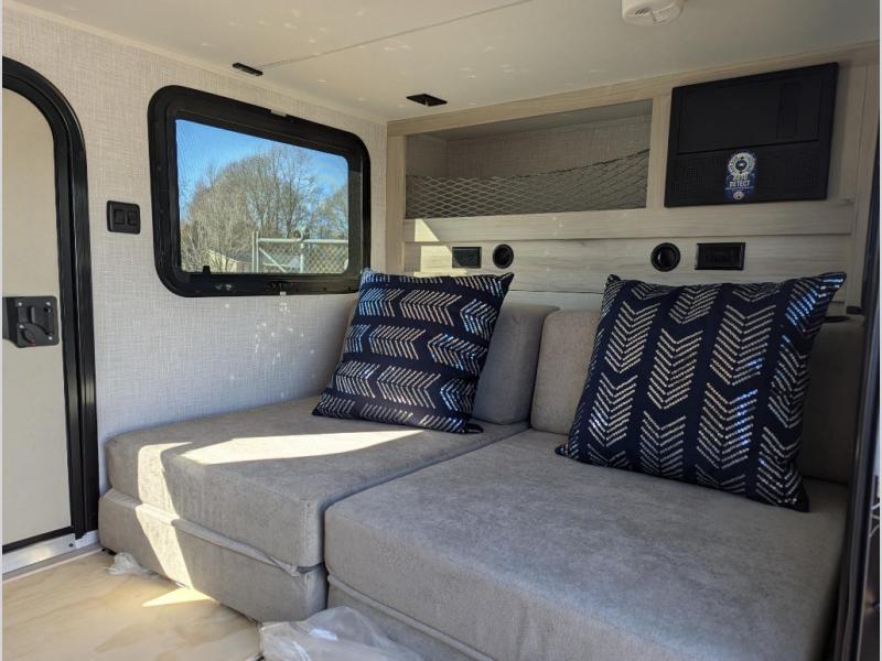 With any Radical teardrop trailer by Bontrager Outdoors, you will find a durable Norco stamped and huck-bolted, powder-coated mainframe and a Torsion-Flex 3,000 lb. independent suspension axle with electric brakes for maximum clearance. There is a multi-purpose gear rack outdoors, along with diamond plate running boards, an awning, and a heavy duty roof rack for camp gear. Multiple 110V, 12V and USB outlets are conveniently located throughout, and you're sure to stay comfortable with the 14,300 BTU Truma Combi heater and 5,000 BTU wall-mounted A/C. And don't overlook the Radical Package that comes with an electric tongue jack, J-cube cushions, quad heavy-duty extendable BAL stabilizing jacks, a bright white fiberglass exterior, and more!