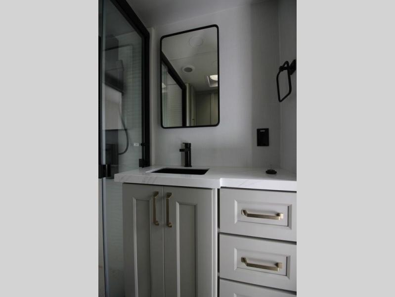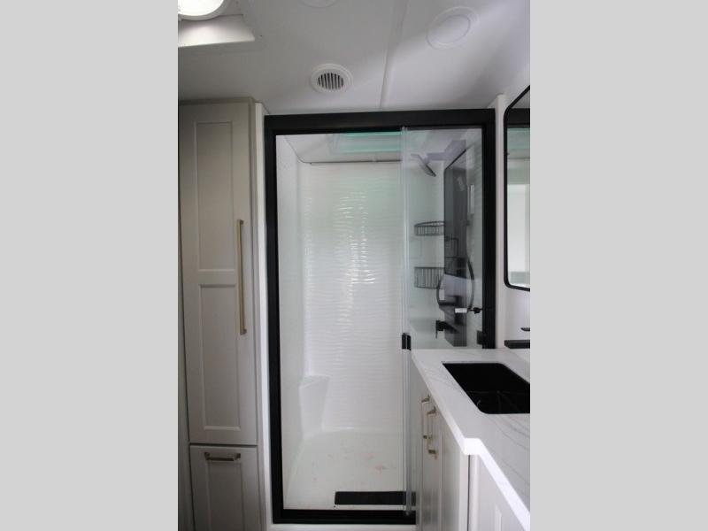 With any Model G toy hauler fifth wheel by Brinkley you will enjoy luxurious amenities, tons of storage space, and innovative features that have been developed and tested in the real world. Durable construction includes an industry leading PDI process, an industry best insulation package, and reinforced and walkable slide roofs. Some of the exterior features you'll find are a 3-way pass-through with a multi-functional flip-up bulkhead wall, under I-beam storage, a MAX-Vision reverse lighting system, and a low-maintenance roof to name a few. A Rockford Fosgate audio system comes standard, along with a OneControl app system that lets you control your fifth wheel's functions right from your mobile device. You will find the solar system with a designated storage area to be ultra convenient, plus there is a FlexPower 5500 with a dual fuel inverter generator for all your power needs. Head inside to find a residential interior with Brinkley's CraftSense wood trim construction, floating entrance steps, integrated window screens and insulated blackout blinds, and residential solid surface countertops plus backsplash. You will also enjoy the neon shower lighting and recessed medicine cabinets in the bath, plus motion activated LED bed lights and dual bedside outlets in the bedroom. Choose a Model G toy hauler fifth wheel to experience all the luxury it has to offer!
