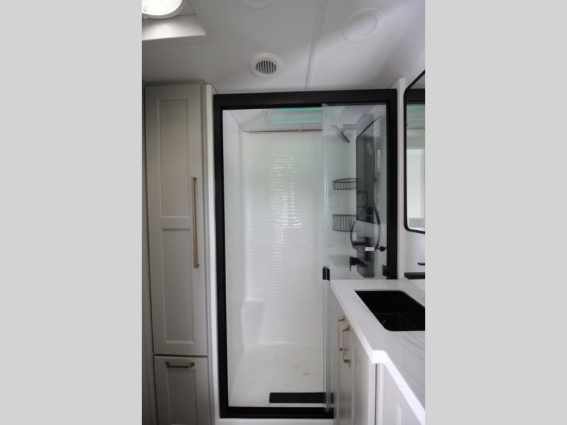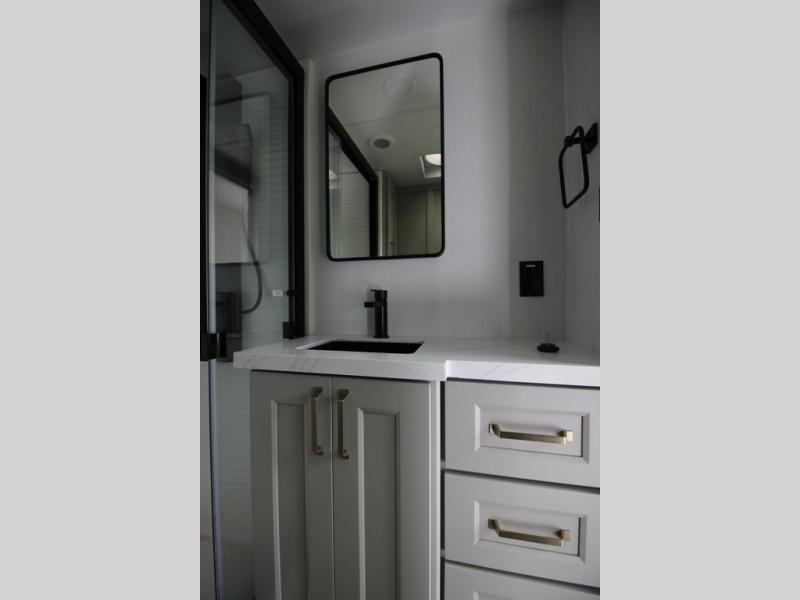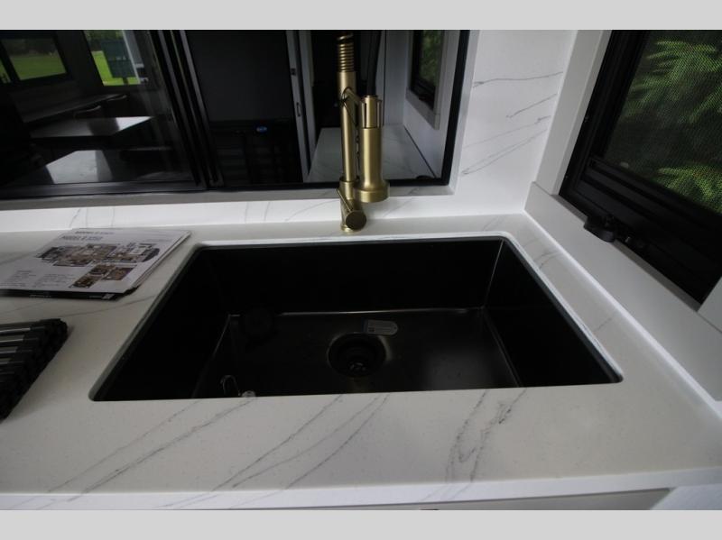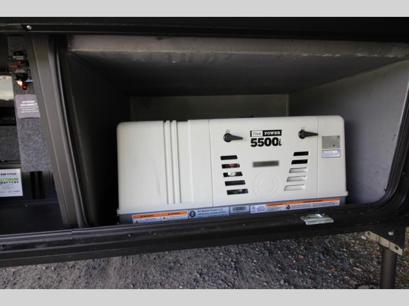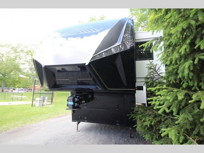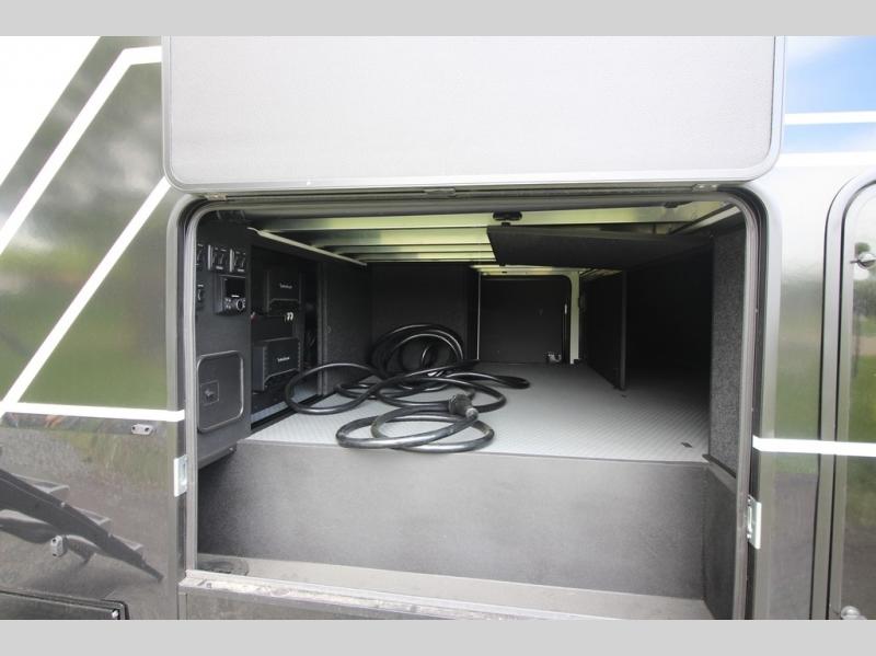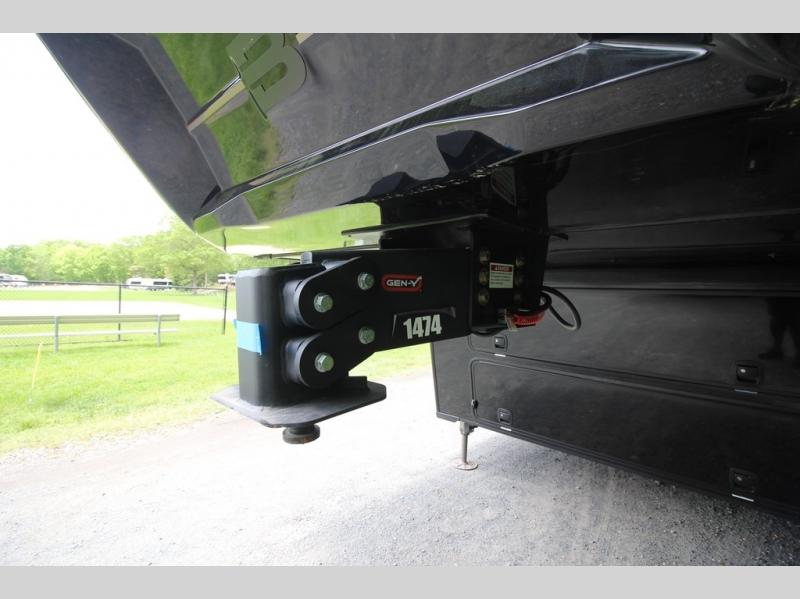With any Model G toy hauler fifth wheel by Brinkley you will enjoy luxurious amenities, tons of storage space, and innovative features that have been developed and tested in the real world. Durable construction includes an industry leading PDI process, an industry best insulation package, and reinforced and walkable slide roofs. Some of the exterior features you'll find are a 3-way pass-through with a multi-functional flip-up bulkhead wall, under I-beam storage, a MAX-Vision reverse lighting system, and a low-maintenance roof to name a few. A Rockford Fosgate audio system comes standard, along with a OneControl app system that lets you control your fifth wheel's functions right from your mobile device. You will find the solar system with a designated storage area to be ultra convenient, plus there is a FlexPower 5500 with a dual fuel inverter generator for all your power needs. Head inside to find a residential interior with Brinkley's CraftSense wood trim construction, floating entrance steps, integrated window screens and insulated blackout blinds, and residential solid surface countertops plus backsplash. You will also enjoy the neon shower lighting and recessed medicine cabinets in the bath, plus motion activated LED bed lights and dual bedside outlets in the bedroom. Choose a Model G toy hauler fifth wheel to experience all the luxury it has to offer!