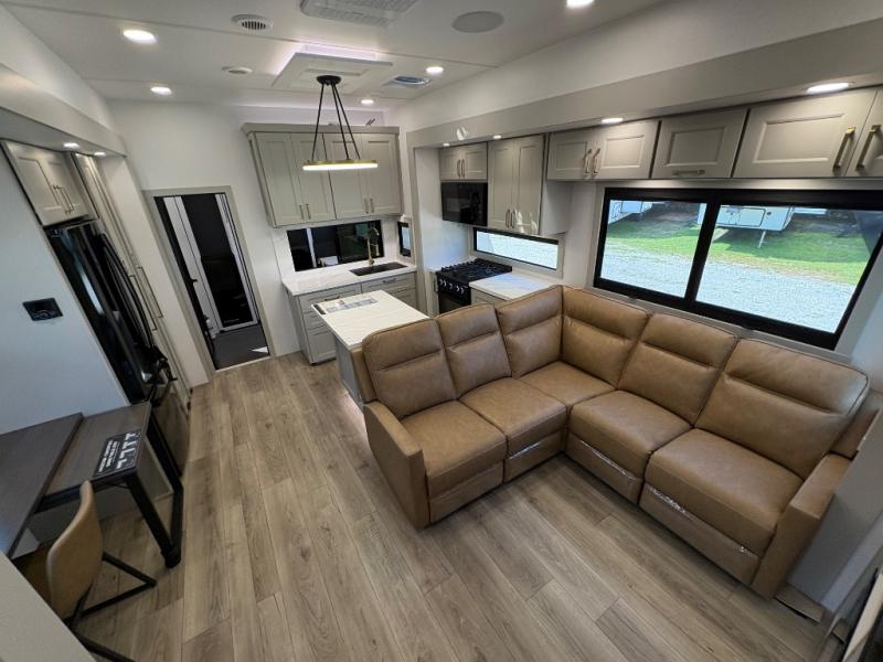 This fifth wheel strikes the perfect balance between luxury and practicality. Whether you’re embarking on weekend getaways or full-time RV living, the Brinkley Model G 3250 offers the comfort of home with the freedom of the open road. Its attention to detail, advanced technology, and rugged build make it a standout choice for any RVer.