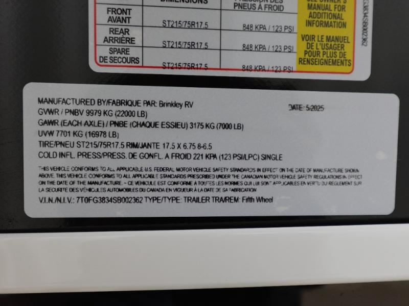 New 2025 Brinkley Model G 3250 Toy Hauler Fifth Wheel
