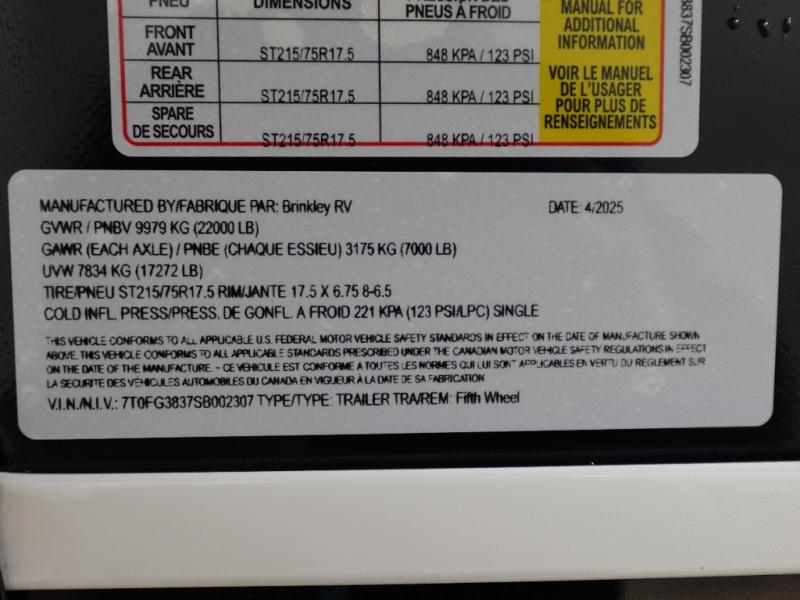 New 2025 Brinkley Model G 3250 Toy Hauler Fifth Wheel