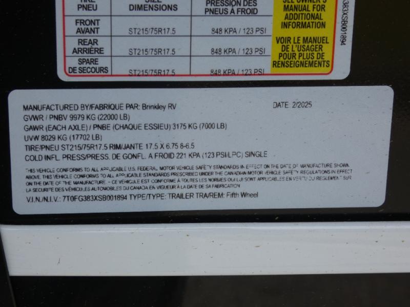 New 2025 Brinkley Model G 3250 Toy Hauler Fifth Wheel
