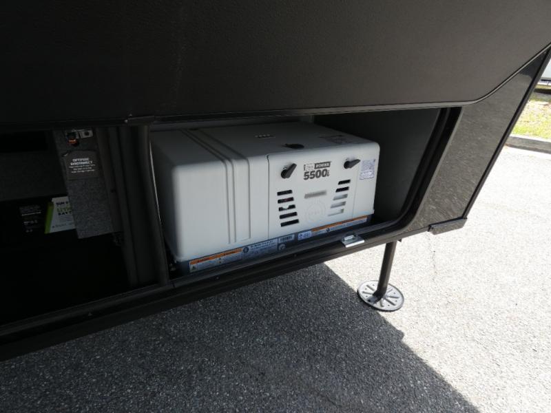 With any Model G toy hauler fifth wheel by Brinkley you will enjoy luxurious amenities, tons of storage space, and innovative features that have been developed and tested in the real world. Durable construction includes an industry leading PDI process, an industry best insulation package, and reinforced and walkable slide roofs. Some of the exterior features you'll find are a 3-way pass-through with a multi-functional flip-up bulkhead wall, under I-beam storage, a MAX-Vision reverse lighting system, and a low-maintenance roof to name a few. A Rockford Fosgate audio system comes standard, along with a OneControl app system that lets you control your fifth wheel's functions right from your mobile device. You will find the solar system with a designated storage area to be ultra convenient, plus there is a FlexPower 5500 with a dual fuel inverter generator for all your power needs. Head inside to find a residential interior with Brinkley's CraftSense wood trim construction, floating entrance steps, integrated window screens and insulated blackout blinds, and residential solid surface countertops plus backsplash. You will also enjoy the neon shower lighting and recessed medicine cabinets in the bath, plus motion activated LED bed lights and dual bedside outlets in the bedroom. Choose a Model G toy hauler fifth wheel to experience all the luxury it has to offer!