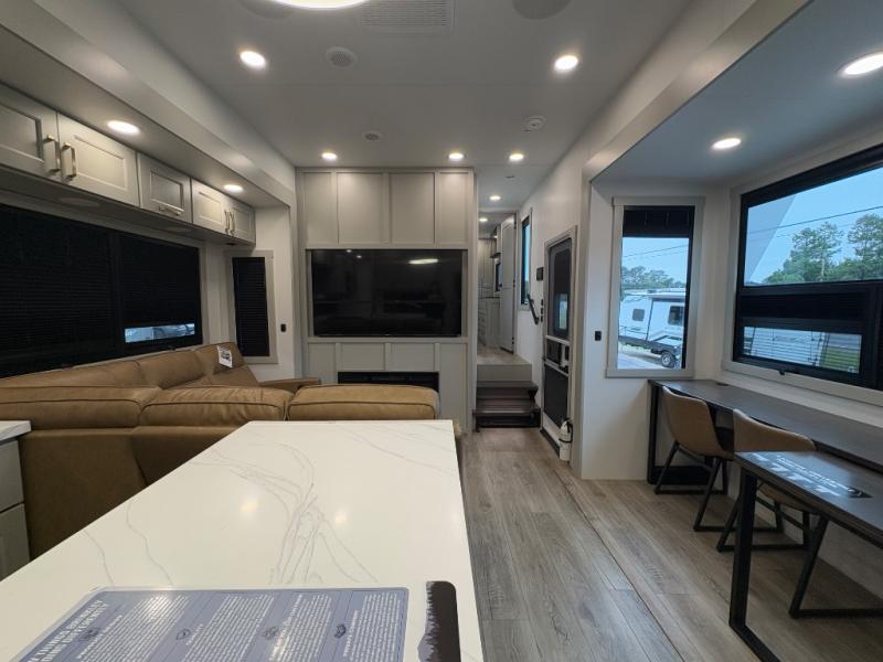 From its residential-style interior and CraftSense wood trim to neon shower lighting and motion-sensing LED bedroom lights, the Brinkley Model G 3250 brings together innovation and comfort like no other. Built with an industry-best insulation package and a full automotive-grade exterior, this fifth wheel is designed for serious adventure in luxury.