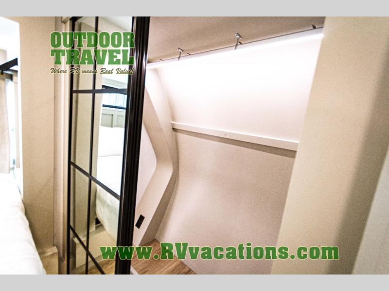 With any Model G toy hauler fifth wheel by Brinkley you will enjoy luxurious amenities, tons of storage space, and innovative features that have been developed and tested in the real world. Durable construction includes an industry leading PDI process, an industry best insulation package, and reinforced and walkable slide roofs. Some of the exterior features you'll find are a 3-way pass-through with a multi-functional flip-up bulkhead wall, under I-beam storage, a MAX-Vision reverse lighting system, and a low-maintenance roof to name a few. A Rockford Fosgate audio system comes standard, along with a Full app-based coach control system (iOS & Android) that lets you control your fifth wheel's functions right from your mobile device. You will find the solar system with a designated storage area to be ultra convenient, plus there is a FlexPower 5500 with a dual fuel inverter generator for all your power needs. Head inside to find a residential interior with Brinkley's CraftSense wood trim construction, floating entrance steps, integrated window screens and insulated blackout blinds, and residential solid surface countertops plus backsplash. You will also enjoy the neon shower lighting and recessed medicine cabinets in the bath, plus motion activated LED bed lights and dual bedside outlets in the bedroom. Choose a Model G toy hauler fifth wheel to experience all the luxury it has to offer!