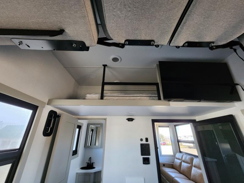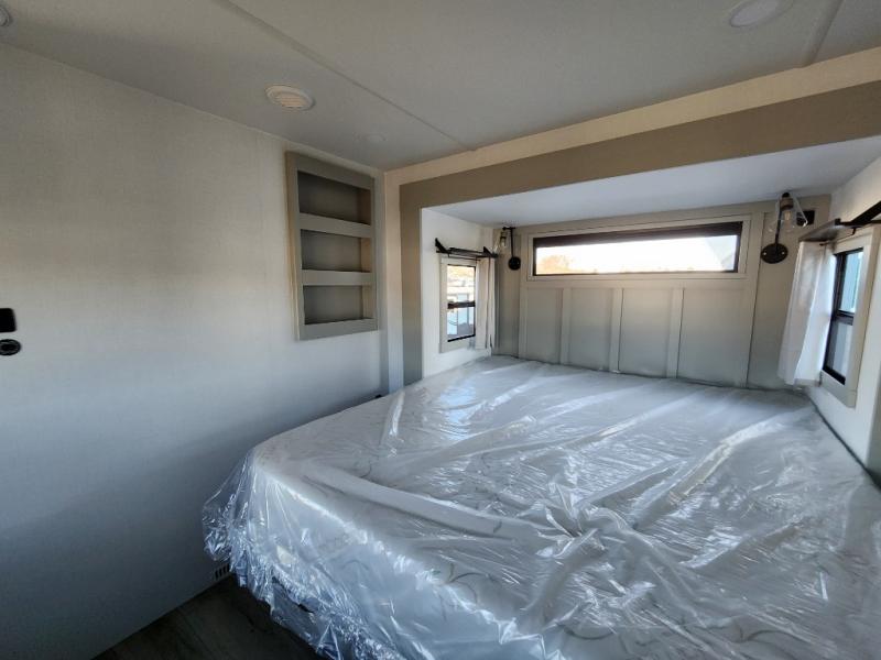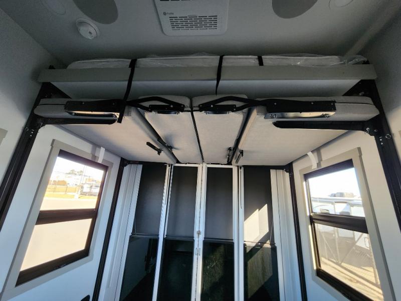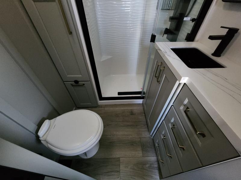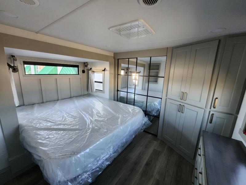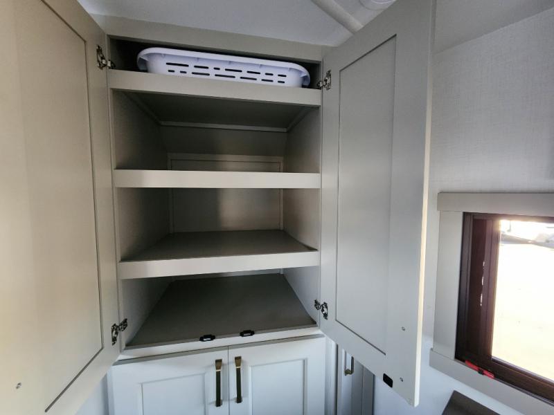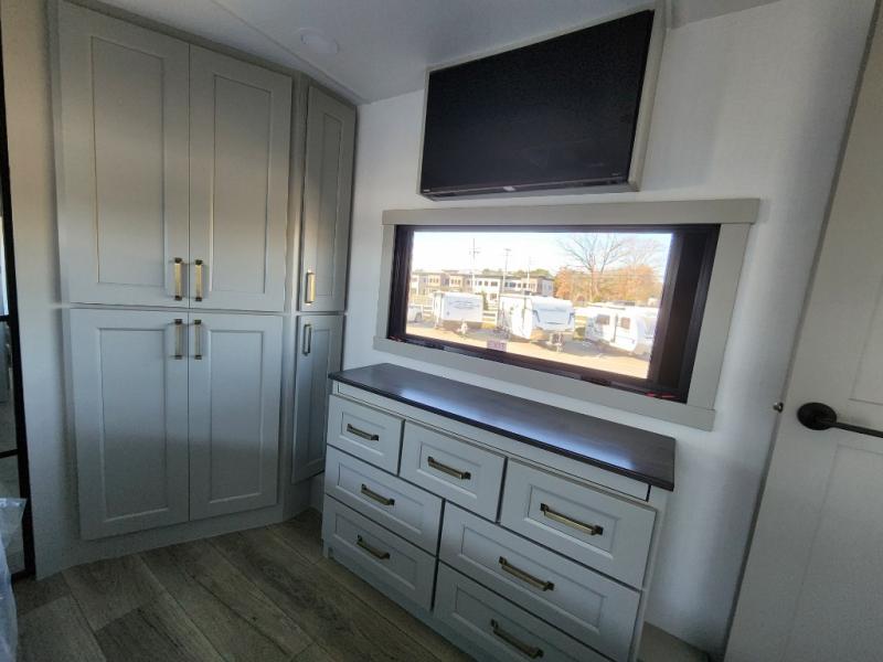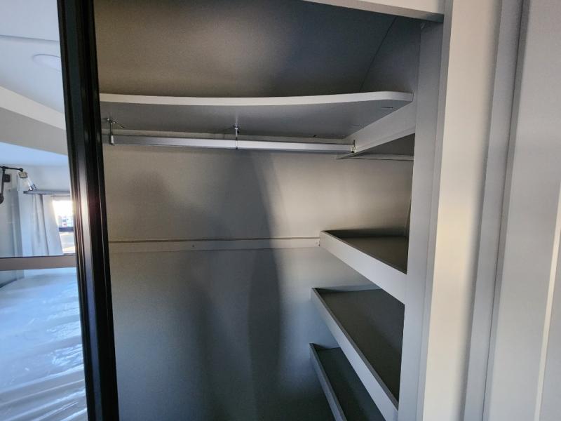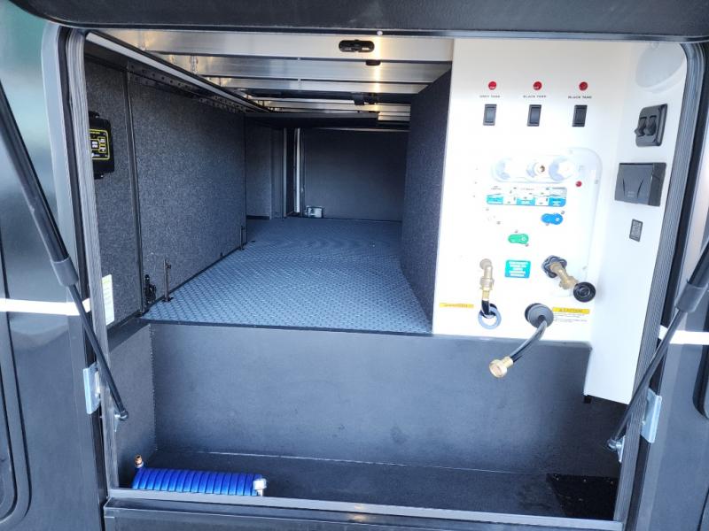 - Interior and exterior storage options are abundant, including a massive pass-through compartment and smartly designed cabinets throughout the RV.