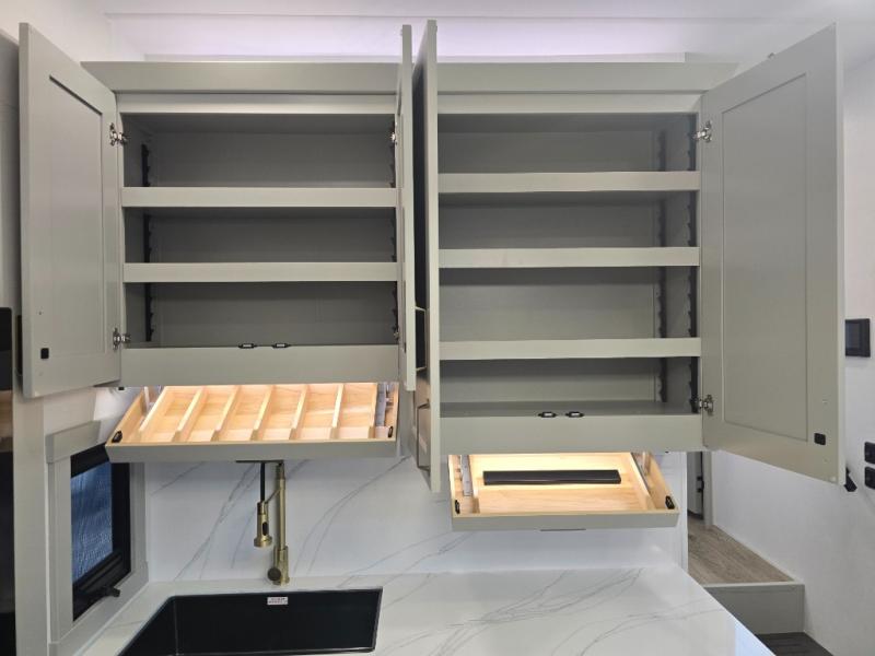 With any Model G toy hauler fifth wheel by Brinkley you will enjoy luxurious amenities, tons of storage space, and innovative features that have been developed and tested in the real world. Durable construction includes an industry leading PDI process, an industry best insulation package, and reinforced and walkable slide roofs. Some of the exterior features you'll find are a 3-way pass-through with a multi-functional flip-up bulkhead wall, under I-beam storage, a MAX-Vision reverse lighting system, and a low-maintenance roof to name a few. A Rockford Fosgate audio system comes standard, along with a OneControl app system that lets you control your fifth wheel's functions right from your mobile device. You will find the solar system with a designated storage area to be ultra convenient, plus there is a FlexPower 5500 with a dual fuel inverter generator for all your power needs. Head inside to find a residential interior with Brinkley's CraftSense wood trim construction, floating entrance steps, integrated window screens and insulated blackout blinds, and residential solid surface countertops plus backsplash. You will also enjoy the neon shower lighting and recessed medicine cabinets in the bath, plus motion activated LED bed lights and dual bedside outlets in the bedroom. Choose a Model G toy hauler fifth wheel to experience all the luxury it has to offer!