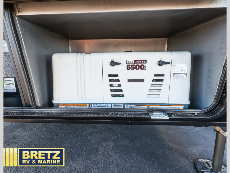 With any Model G toy hauler fifth wheel by Brinkley you will enjoy luxurious amenities, tons of storage space, and innovative features that have been developed and tested in the real world. Durable construction includes an industry leading PDI process, an industry best insulation package, and reinforced and walkable slide roofs. Some of the exterior features you'll find are a 3-way pass-through with a multi-functional flip-up bulkhead wall, under I-beam storage, a MAX-Vision reverse lighting system, and a low-maintenance roof to name a few. A Rockford Fosgate audio system comes standard, along with a OneControl app system that lets you control your fifth wheel's functions right from your mobile device. You will find the solar system with a designated storage area to be ultra convenient, plus there is a FlexPower 5500 with a dual fuel inverter generator for all your power needs. Head inside to find a residential interior with Brinkley's CraftSense wood trim construction, floating entrance steps, integrated window screens and insulated blackout blinds, and residential solid surface countertops plus backsplash. You will also enjoy the neon shower lighting and recessed medicine cabinets in the bath, plus motion activated LED bed lights and dual bedside outlets in the bedroom. Choose a Model G toy hauler fifth wheel to experience all the luxury it has to offer!