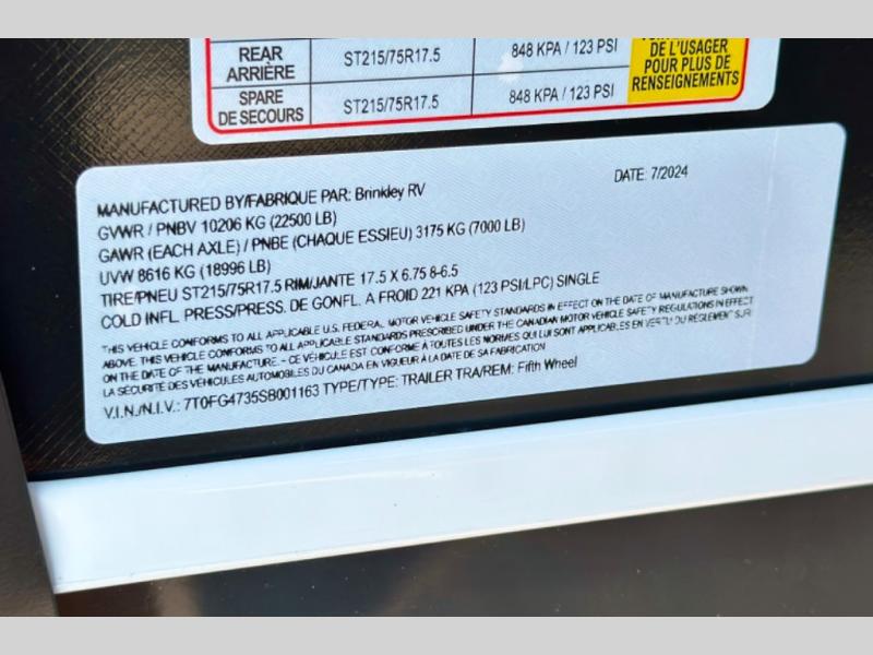 New 2025 Brinkley Model G 3950 Toy Hauler Fifth Wheel