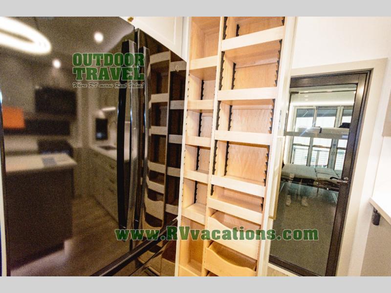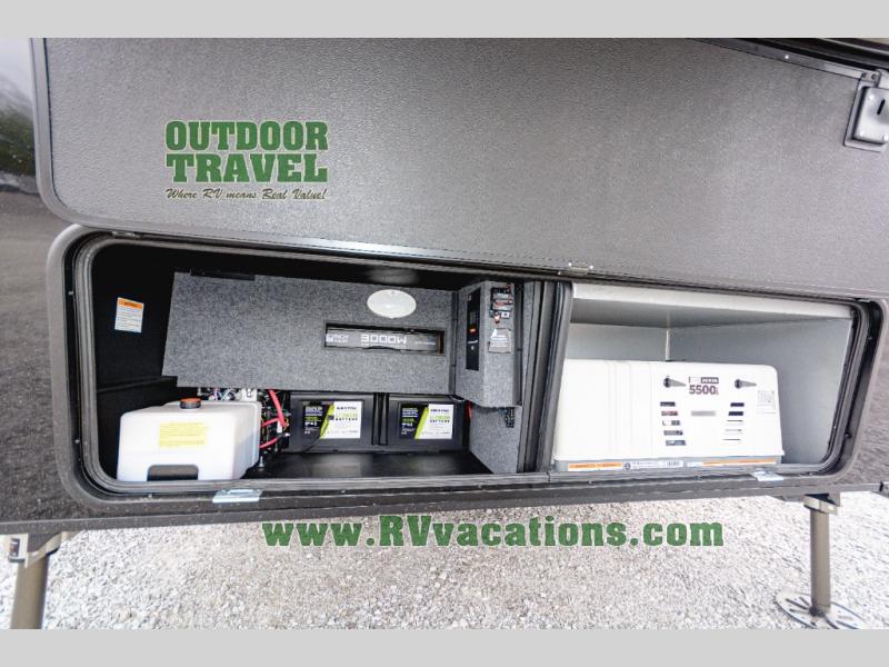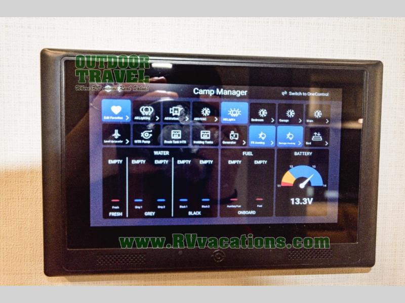 With any Model G toy hauler fifth wheel by Brinkley you will enjoy luxurious amenities, tons of storage space, and innovative features that have been developed and tested in the real world. Durable construction includes an industry leading PDI process, an industry best insulation package, and reinforced and walkable slide roofs. Some of the exterior features you'll find are a 3-way pass-through with a multi-functional flip-up bulkhead wall, under I-beam storage, a MAX-Vision reverse lighting system, and a low-maintenance roof to name a few. A Rockford Fosgate audio system comes standard, along with a OneControl app system that lets you control your fifth wheel's functions right from your mobile device. You will find the solar system with a designated storage area to be ultra convenient, plus there is a FlexPower 5500 with a dual fuel inverter generator for all your power needs. Head inside to find a residential interior with Brinkley's CraftSense wood trim construction, floating entrance steps, integrated window screens and insulated blackout blinds, and residential solid surface countertops plus backsplash. You will also enjoy the neon shower lighting and recessed medicine cabinets in the bath, plus motion activated LED bed lights and dual bedside outlets in the bedroom. Choose a Model G toy hauler fifth wheel to experience all the luxury it has to offer!