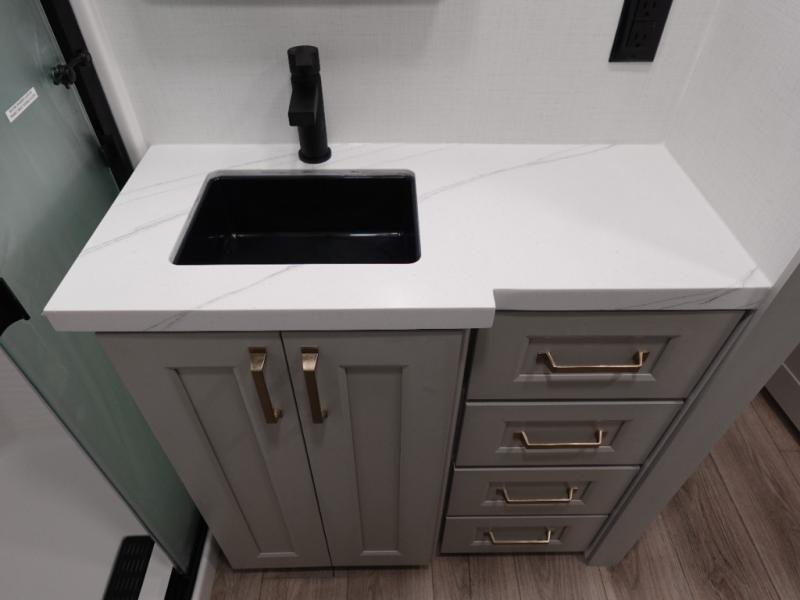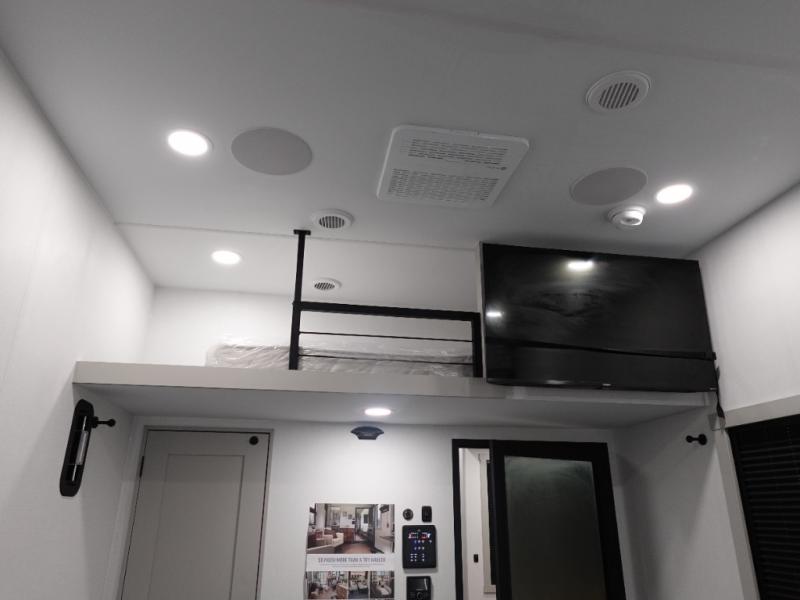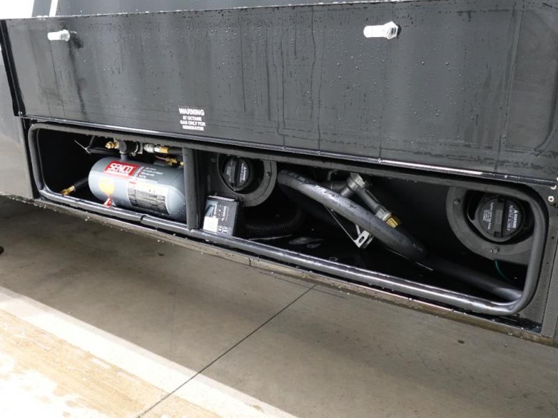 With any Model G toy hauler fifth wheel by Brinkley you will enjoy luxurious amenities, tons of storage space, and innovative features that have been developed and tested in the real world. Durable construction includes an industry leading PDI process, an industry best insulation package, and reinforced and walkable slide roofs. Some of the exterior features you'll find are a 3-way pass-through with a multi-functional flip-up bulkhead wall, under I-beam storage, a MAX-Vision reverse lighting system, and a low-maintenance roof to name a few. A Rockford Fosgate audio system comes standard, along with a OneControl app system that lets you control your fifth wheel's functions right from your mobile device. You will find the solar system with a designated storage area to be ultra convenient, plus there is a FlexPower 5500 with a dual fuel inverter generator for all your power needs. Head inside to find a residential interior with Brinkley's CraftSense wood trim construction, floating entrance steps, integrated window screens and insulated blackout blinds, and residential solid surface countertops plus backsplash. You will also enjoy the neon shower lighting and recessed medicine cabinets in the bath, plus motion activated LED bed lights and dual bedside outlets in the bedroom. Choose a Model G toy hauler fifth wheel to experience all the luxury it has to offer!