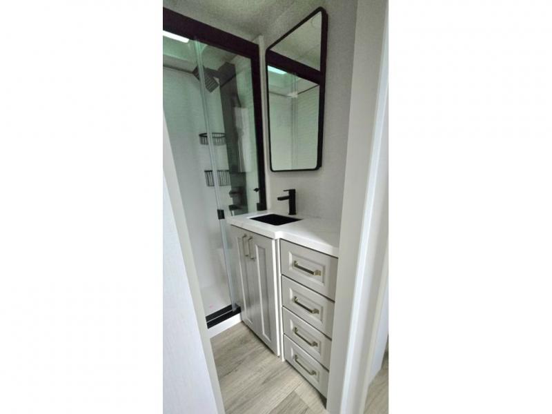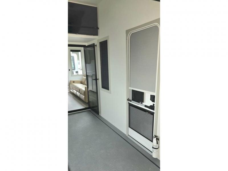 With any Model G toy hauler fifth wheel by Brinkley you will enjoy luxurious amenities, tons of storage space, and innovative features that have been developed and tested in the real world. Durable construction includes an industry leading PDI process, an industry best insulation package, and reinforced and walkable slide roofs. Some of the exterior features you'll find are a 3-way pass-through with a multi-functional flip-up bulkhead wall, under I-beam storage, a MAX-Vision reverse lighting system, and a low-maintenance roof to name a few. A Rockford Fosgate audio system comes standard, along with a OneControl app system that lets you control your fifth wheel's functions right from your mobile device. You will find the solar system with a designated storage area to be ultra convenient, plus there is a FlexPower 5500 with a dual fuel inverter generator for all your power needs. Head inside to find a residential interior with Brinkley's CraftSense wood trim construction, floating entrance steps, integrated window screens and insulated blackout blinds, and residential solid surface countertops plus backsplash. You will also enjoy the neon shower lighting and recessed medicine cabinets in the bath, plus motion activated LED bed lights and dual bedside outlets in the bedroom. Choose a Model G toy hauler fifth wheel to experience all the luxury it has to offer!