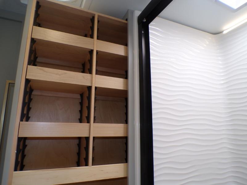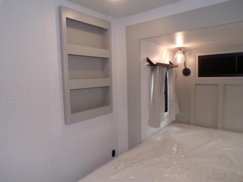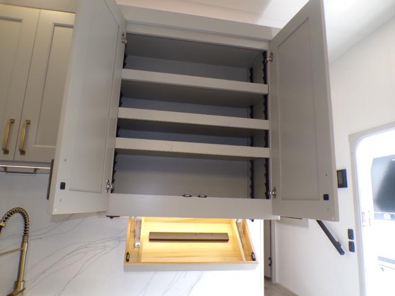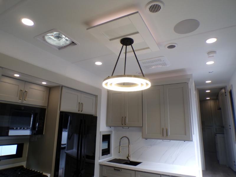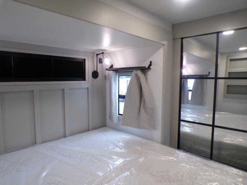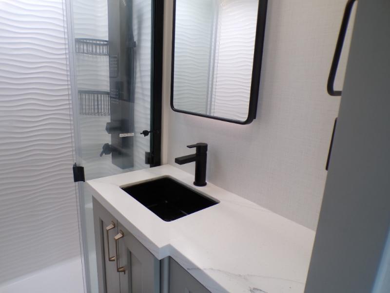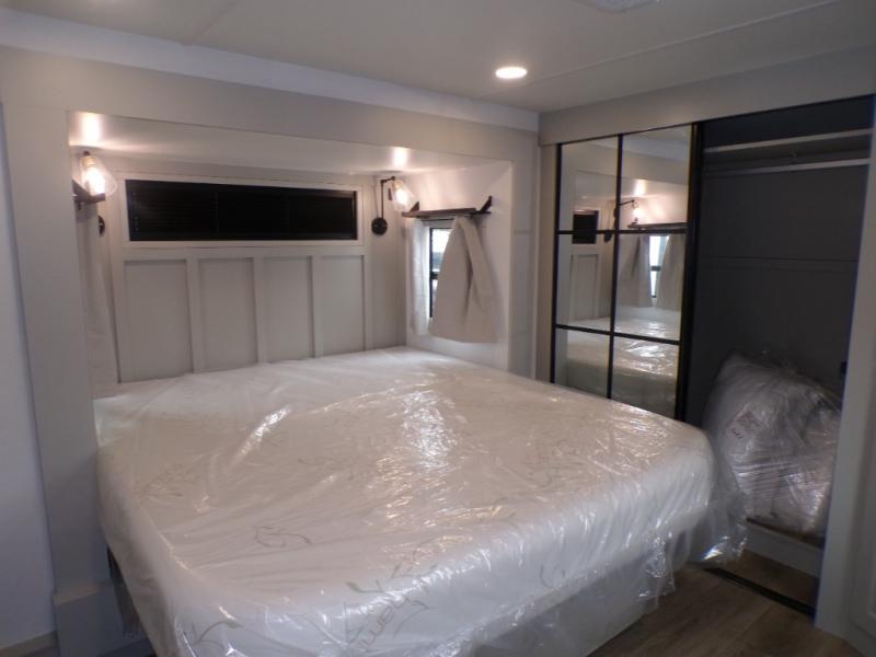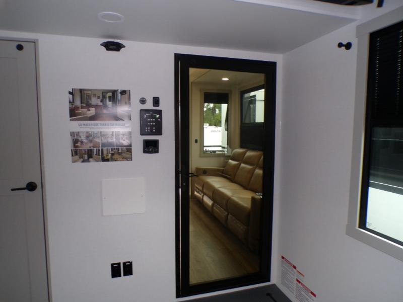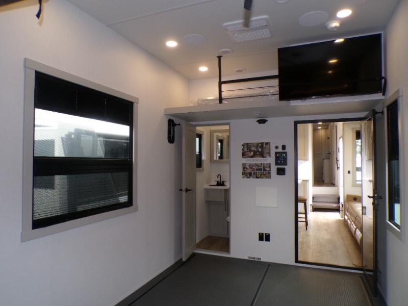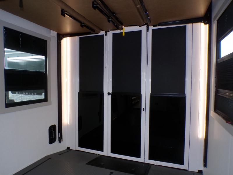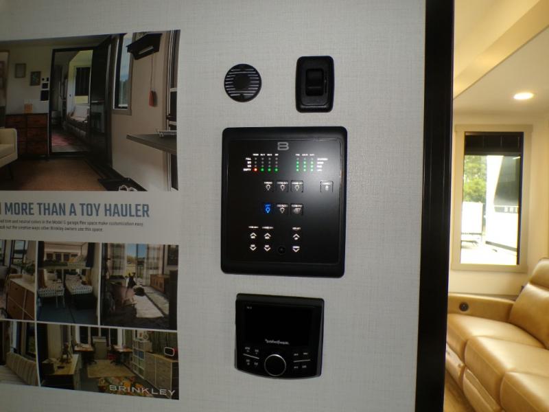 With any Model G toy hauler fifth wheel by Brinkley you will enjoy luxurious amenities, tons of storage space, and innovative features that have been developed and tested in the real world. Durable construction includes an industry leading PDI process, an industry best insulation package, and reinforced and walkable slide roofs. Some of the exterior features you'll find are a 3-way pass-through with a multi-functional flip-up bulkhead wall, under I-beam storage, a MAX-Vision reverse lighting system, and a low-maintenance roof to name a few. A Rockford Fosgate audio system comes standard, along with a OneControl app system that lets you control your fifth wheel's functions right from your mobile device. You will find the solar system with a designated storage area to be ultra convenient, plus there is a FlexPower 5500 with a dual fuel inverter generator for all your power needs. Head inside to find a residential interior with Brinkley's CraftSense wood trim construction, floating entrance steps, integrated window screens and insulated blackout blinds, and residential solid surface countertops plus backsplash. You will also enjoy the neon shower lighting and recessed medicine cabinets in the bath, plus motion activated LED bed lights and dual bedside outlets in the bedroom. Choose a Model G toy hauler fifth wheel to experience all the luxury it has to offer!