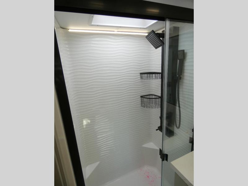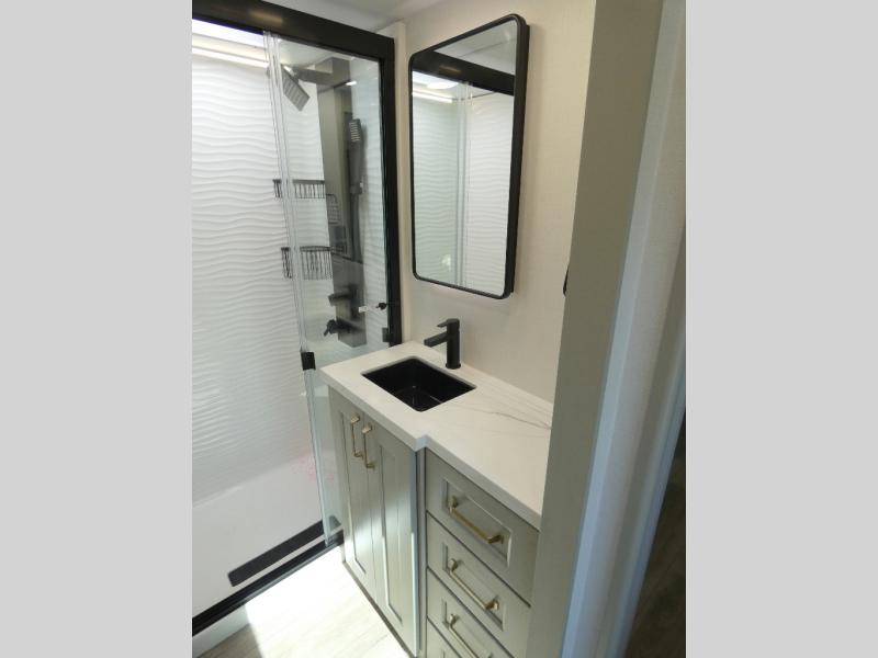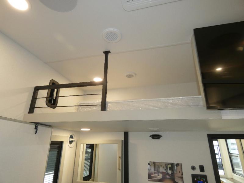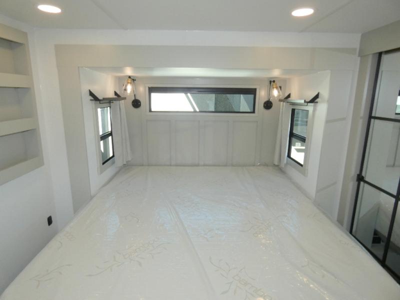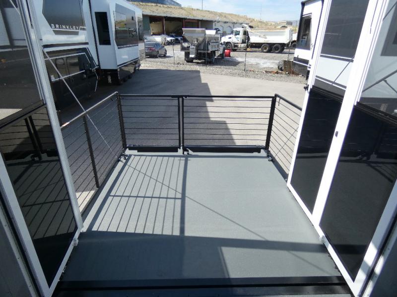With any Model G toy hauler fifth wheel by Brinkley you will enjoy luxurious amenities, tons of storage space, and innovative features that have been developed and tested in the real world. Durable construction includes an industry leading PDI process, an industry best insulation package, and reinforced and walkable slide roofs. Some of the exterior features you'll find are a 3-way pass-through with a multi-functional flip-up bulkhead wall, under I-beam storage, a MAX-Vision reverse lighting system, and a low-maintenance roof to name a few. A Rockford Fosgate audio system comes standard, along with a OneControl app system that lets you control your fifth wheel's functions right from your mobile device. You will find the solar system with a designated storage area to be ultra convenient, plus there is a FlexPower 5500 with a dual fuel inverter generator for all your power needs. Head inside to find a residential interior with Brinkley's CraftSense wood trim construction, floating entrance steps, integrated window screens and insulated blackout blinds, and residential solid surface countertops plus backsplash. You will also enjoy the neon shower lighting and recessed medicine cabinets in the bath, plus motion activated LED bed lights and dual bedside outlets in the bedroom. Choose a Model G toy hauler fifth wheel to experience all the luxury it has to offer!