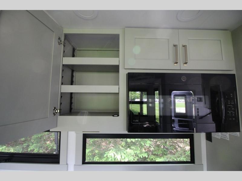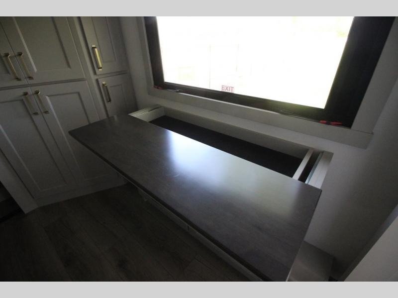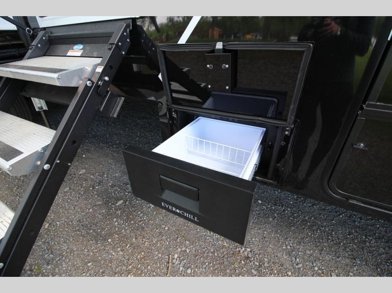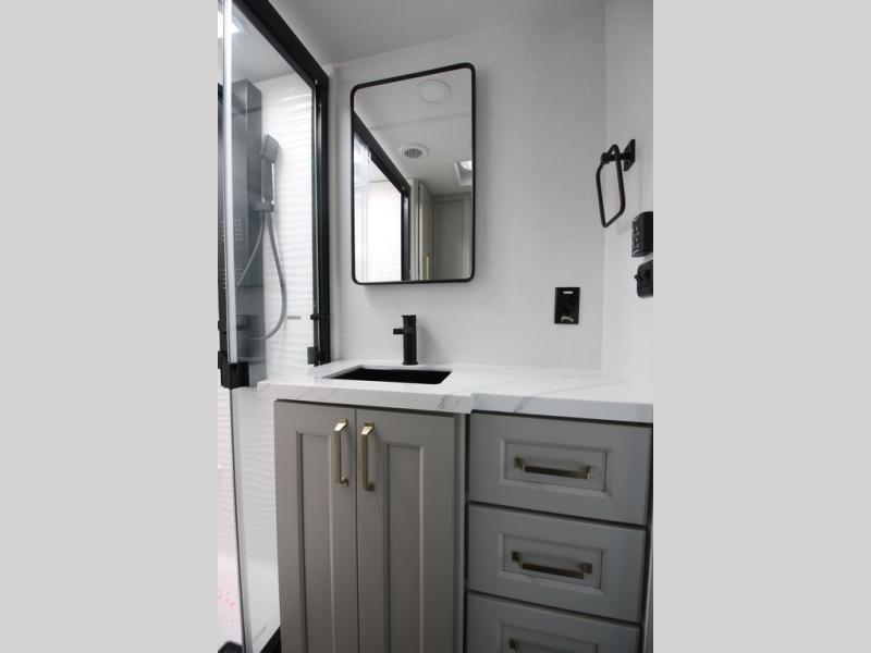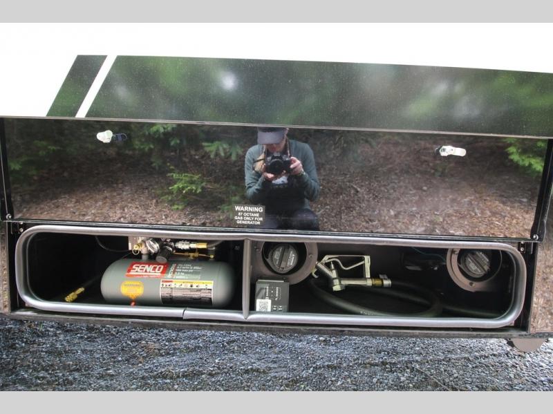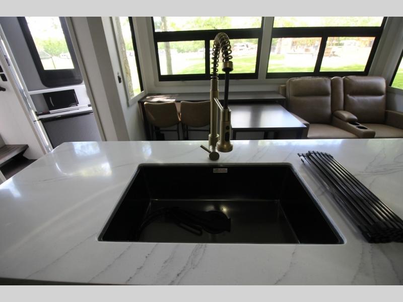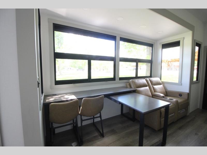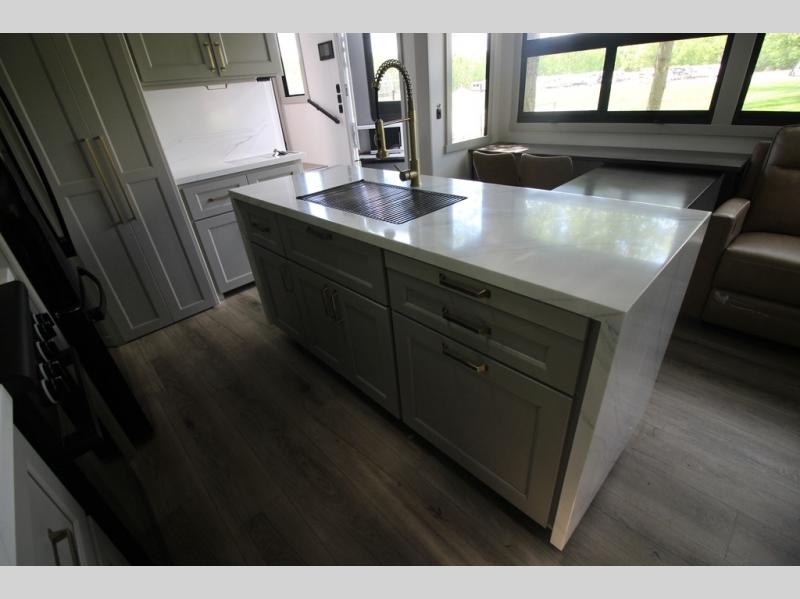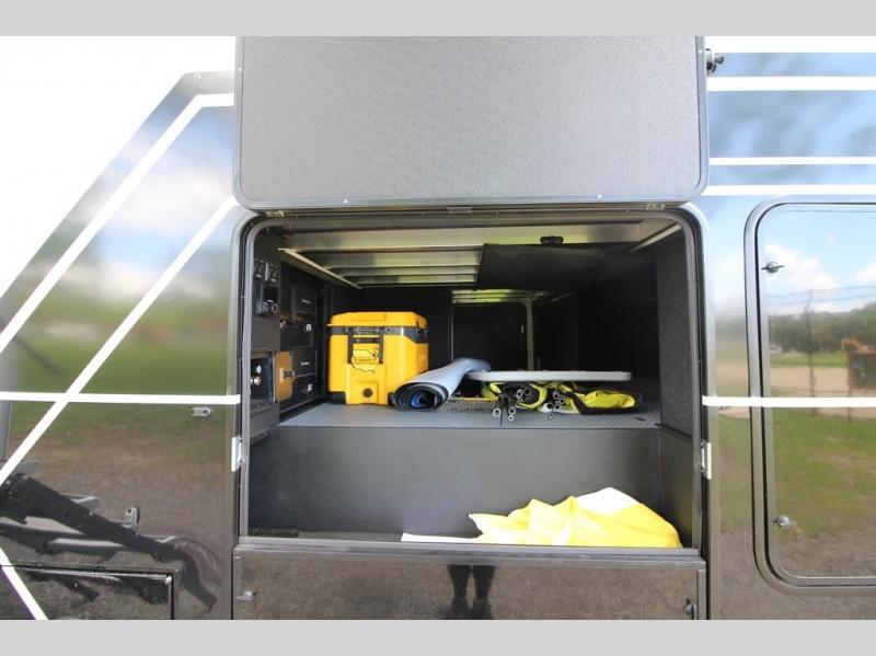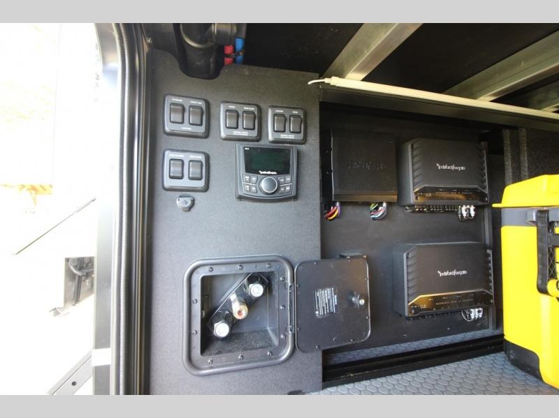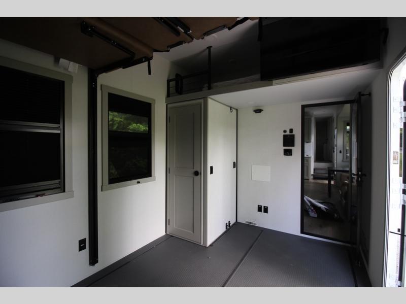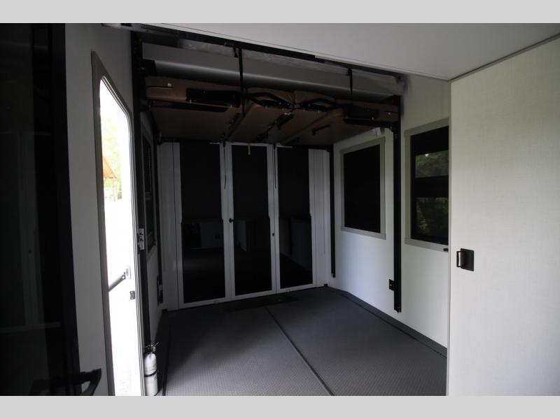 With any Model G toy hauler fifth wheel by Brinkley you will enjoy luxurious amenities, tons of storage space, and innovative features that have been developed and tested in the real world. Durable construction includes an industry leading PDI process, an industry best insulation package, and reinforced and walkable slide roofs. Some of the exterior features you'll find are a 3-way pass-through with a multi-functional flip-up bulkhead wall, under I-beam storage, a MAX-Vision reverse lighting system, and a low-maintenance roof to name a few. A Rockford Fosgate audio system comes standard, along with a OneControl app system that lets you control your fifth wheel's functions right from your mobile device. You will find the solar system with a designated storage area to be ultra convenient, plus there is a FlexPower 5500 with a dual fuel inverter generator for all your power needs. Head inside to find a residential interior with Brinkley's CraftSense wood trim construction, floating entrance steps, integrated window screens and insulated blackout blinds, and residential solid surface countertops plus backsplash. You will also enjoy the neon shower lighting and recessed medicine cabinets in the bath, plus motion activated LED bed lights and dual bedside outlets in the bedroom. Choose a Model G toy hauler fifth wheel to experience all the luxury it has to offer!