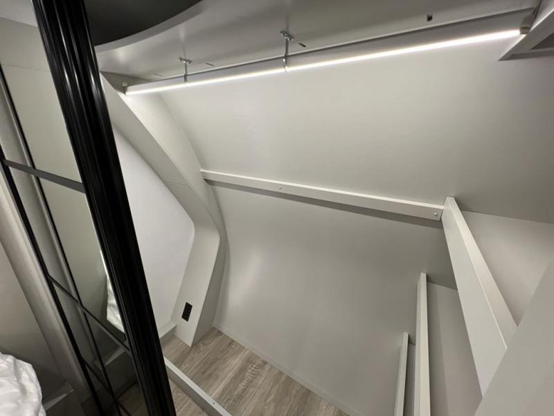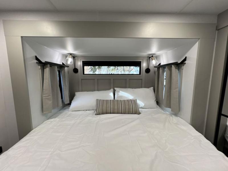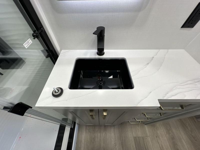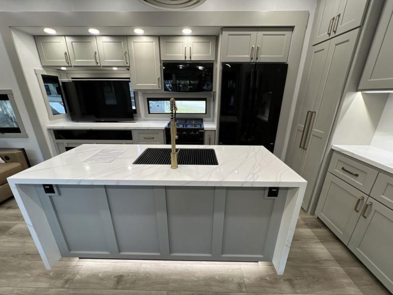 With any Model G toy hauler fifth wheel by Brinkley you will enjoy luxurious amenities, tons of storage space, and innovative features that have been developed and tested in the real world. Durable construction includes an industry leading PDI process, an industry best insulation package, and reinforced and walkable slide roofs. Some of the exterior features you'll find are a 3-way pass-through with a multi-functional flip-up bulkhead wall, under I-beam storage, a MAX-Vision reverse lighting system, and a low-maintenance roof to name a few. A Rockford Fosgate audio system comes standard, along with a OneControl app system that lets you control your fifth wheel's functions right from your mobile device. You will find the solar system with a designated storage area to be ultra convenient, plus there is a FlexPower 5500 with a dual fuel inverter generator for all your power needs. Head inside to find a residential interior with Brinkley's CraftSense wood trim construction, floating entrance steps, integrated window screens and insulated blackout blinds, and residential solid surface countertops plus backsplash. You will also enjoy the neon shower lighting and recessed medicine cabinets in the bath, plus motion activated LED bed lights and dual bedside outlets in the bedroom. Choose a Model G toy hauler fifth wheel to experience all the luxury it has to offer!