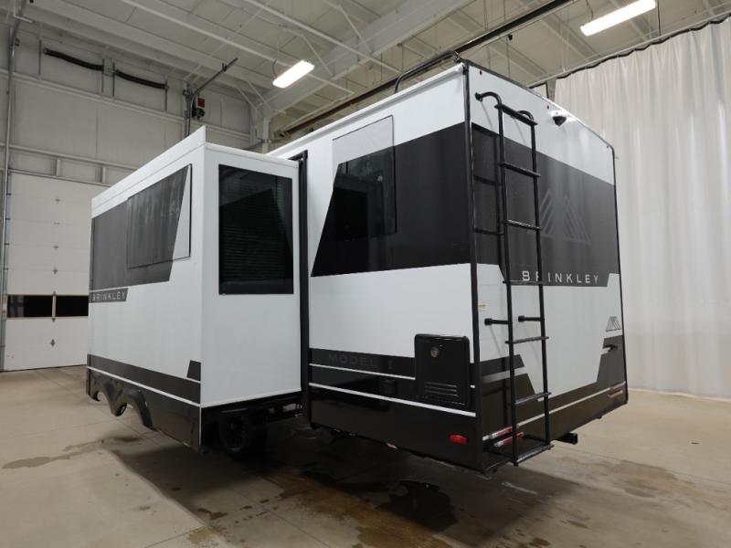 The lightweight Model I travel trailer by Brinkley is the perfect choice for those looking for an easy tow and at-home comforts! There is a drop-frame chassis, high-performance Road Armor suspension equalizer system, and Demco EZ Latch trailer coupler that automatically latches when dropped onto a hitch ball without the need of a safety pin. Additional exterior features include square Euro frameless windows, automotive-grade paint, full-width LED strip lighting in the pass-thru, and a pet & property security campside tie-down to keep your gear and furry friends safe. Inside, you'll be wowed by Brinkley's CraftSense wood trim construction, residential solid surface kitchen countertops, dimmable bedroom lights, and marine-grade neon LED shower lighting to name a few stand-out features!
