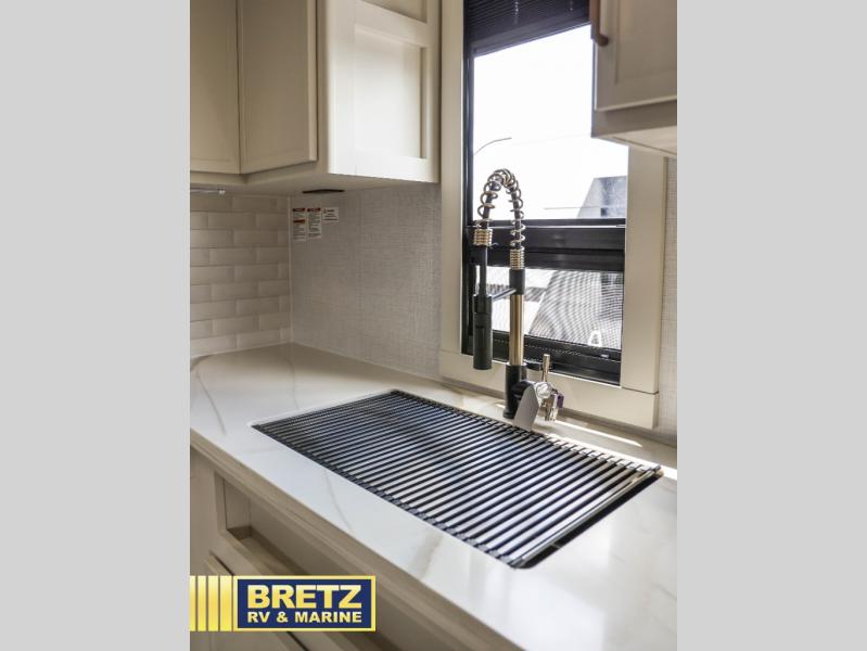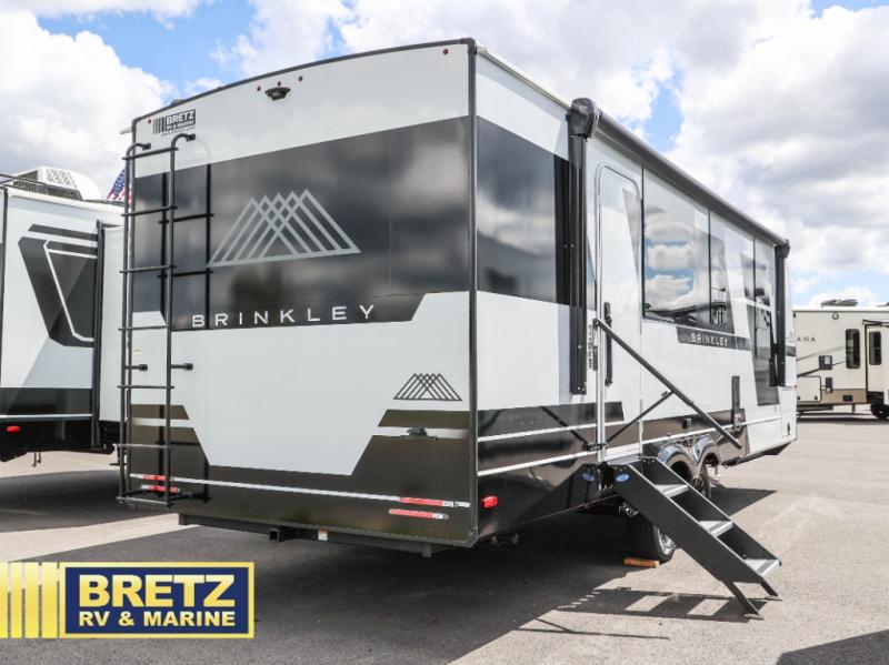 The lightweight Model I travel trailer by Brinkley is the perfect choice for those looking for an easy tow and at-home comforts! There is a drop-frame chassis, high-performance Road Armor suspension equalizer system, and Demco EZ Latch trailer coupler that automatically latches when dropped onto a hitch ball without the need of a safety pin. Additional exterior features include square Euro frameless windows, automotive-grade paint, full-width LED strip lighting in the pass-thru, and a pet & property security campside tie-down to keep your gear and furry friends safe. Inside, you'll be wowed by Brinkley's CraftSense wood trim construction, residential solid surface kitchen countertops, dimmable bedroom lights, and marine-grade neon LED shower lighting to name a few stand-out features!