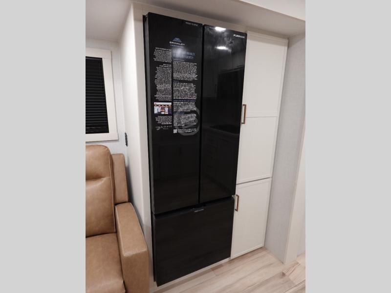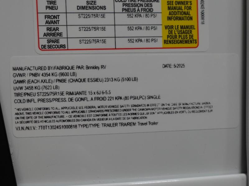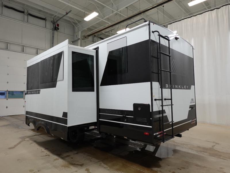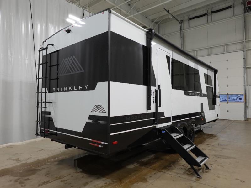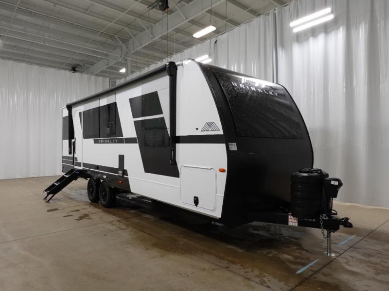 The lightweight Model I travel trailer by Brinkley is the perfect choice for those looking for an easy tow and at-home comforts! There is a drop-frame chassis, high-performance Road Armor suspension equalizer system, and Demco EZ Latch trailer coupler that automatically latches when dropped onto a hitch ball without the need of a safety pin. Additional exterior features include square Euro frameless windows, automotive-grade paint, full-width LED strip lighting in the pass-thru, and a pet & property security campside tie-down to keep your gear and furry friends safe. Inside, you'll be wowed by Brinkley's CraftSense wood trim construction, residential solid surface kitchen countertops, dimmable bedroom lights, and marine-grade neon LED shower lighting to name a few stand-out features!