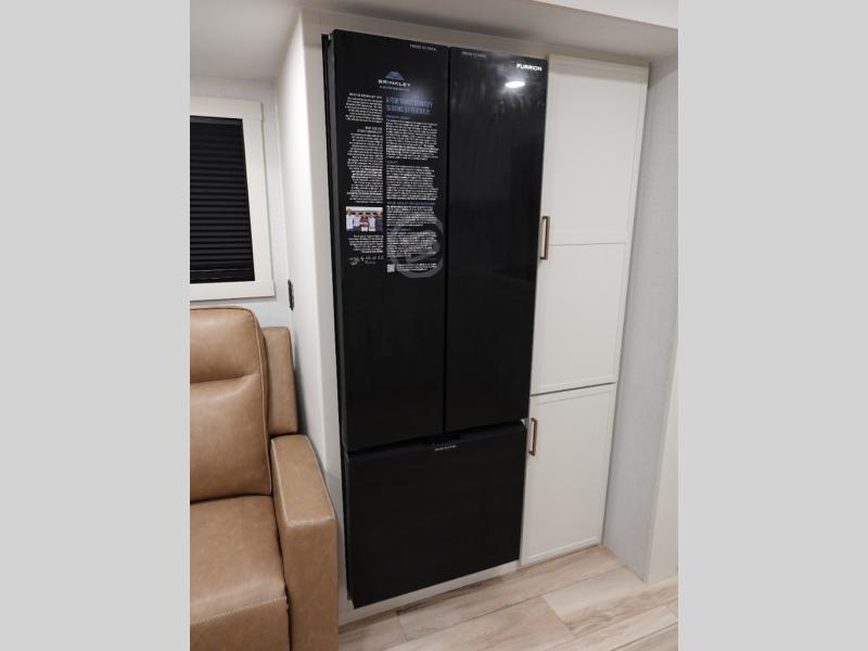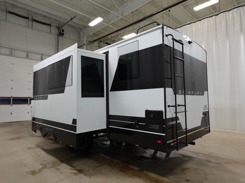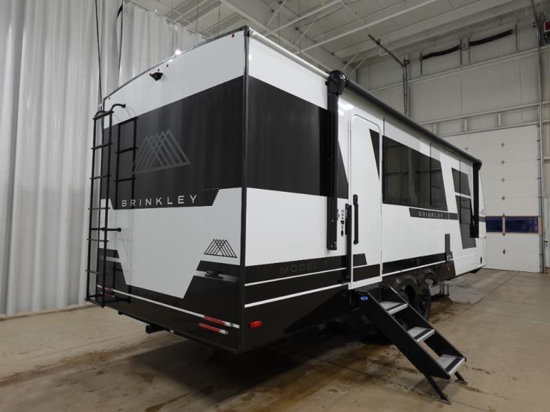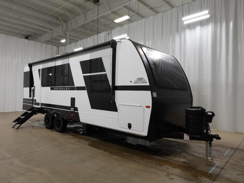 The lightweight Model I travel trailer by Brinkley is the perfect choice for those looking for an easy tow and at-home comforts! There is a drop-frame chassis, high-performance Road Armor suspension equalizer system, and Demco EZ Latch trailer coupler that automatically latches when dropped onto a hitch ball without the need of a safety pin. Additional exterior features include square Euro frameless windows, automotive-grade paint, full-width LED strip lighting in the pass-thru, and a pet & property security campside tie-down to keep your gear and furry friends safe. Inside, you'll be wowed by Brinkley's CraftSense wood trim construction, residential solid surface kitchen countertops, dimmable bedroom lights, and marine-grade neon LED shower lighting to name a few stand-out features!