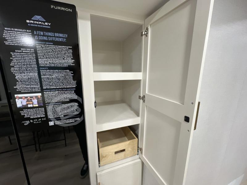 The lightweight Model I travel trailer by Brinkley is the perfect choice for those looking for an easy tow and at-home comforts! There is a drop-frame chassis, high-performance Road Armor suspension equalizer system, and Demco EZ Latch trailer coupler that automatically latches when dropped onto a hitch ball without the need of a safety pin. Additional exterior features include square Euro frameless windows, automotive-grade paint, full-width LED strip lighting in the pass-thru, and a pet & property security campside tie-down to keep your gear and furry friends safe. Inside, you'll be wowed by Brinkley's CraftSense wood trim construction, residential solid surface kitchen countertops, dimmable bedroom lights, and marine-grade neon LED shower lighting to name a few stand-out features!