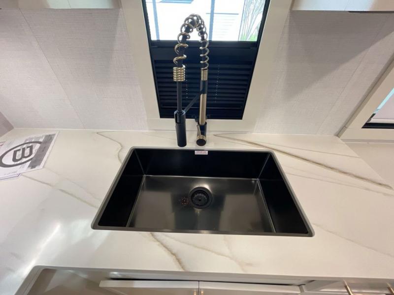 The lightweight Model I travel trailer by Brinkley is the perfect choice for those looking for an easy tow and at-home comforts! There is a drop-frame chassis, high-performance Road Armor suspension equalizer system, and Demco EZ Latch trailer coupler that automatically latches when dropped onto a hitch ball without the need of a safety pin. Additional exterior features include square Euro frameless windows, automotive-grade paint, full-width LED strip lighting in the pass-thru, and a pet & property security campside tie-down to keep your gear and furry friends safe. Inside, you'll be wowed by Brinkley's CraftSense wood trim construction, residential solid surface kitchen countertops, dimmable bedroom lights, and marine-grade neon LED shower lighting to name a few stand-out features!