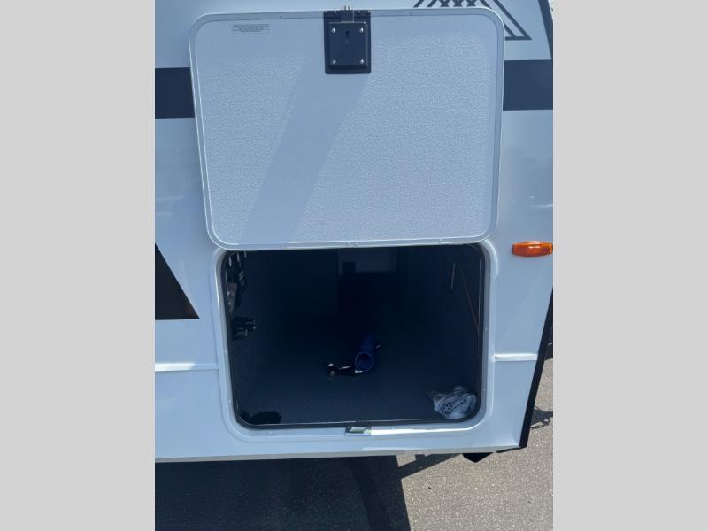 This travel trailer can comfortably sleep four with the king bed in the private bedroom and the tri-fold sofa in the main living area! The full bath features a spacious 42" x 30" shower with a built-in seat and Maxxair fan to name a few comforts. The front private bedroom features a 66" x 80" king bed with a MaxSpace Split-Level Wardrobe underneath to store shoes, clothes, and more! A slide out in the combined living area and rear kitchen makes your space more open, and you'll enjoy relaxing on the theater seating here in the evenings. The full kitchen includes a three burner stovetop, residential 30" convection microwave, 12 cu. ft. 12V refrigerator, plus a trash bin and Stow N' Go paper towel holder for added convenience. You can choose to eat outdoors under the 19' electric awning with LED lights or stay inside to dine at the pull-out dining table with a drawer for added storage!