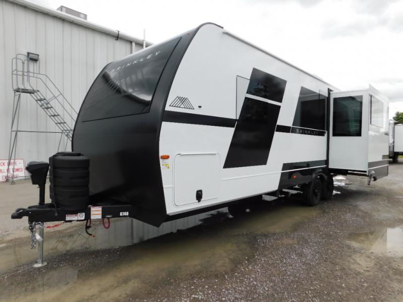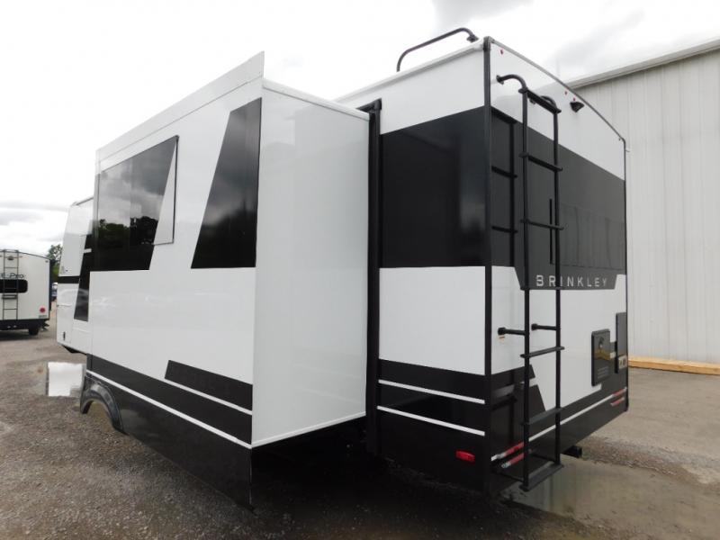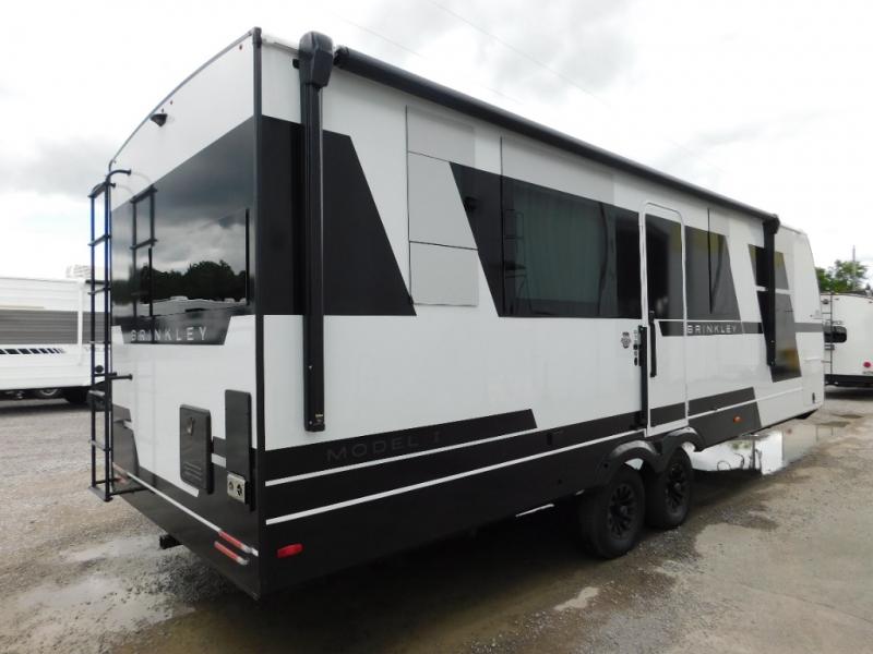 The lightweight Model I travel trailer by Brinkley is the perfect choice for those looking for an easy tow and at-home comforts! There is a drop-frame chassis, high-performance Road Armor suspension equalizer system, and Demco EZ Latch trailer coupler that automatically latches when dropped onto a hitch ball without the need of a safety pin. Additional exterior features include square Euro frameless windows, automotive-grade paint, full-width LED strip lighting in the pass-thru, and a pet & property security campside tie-down to keep your gear and furry friends safe. Inside, you'll be wowed by Brinkley's CraftSense wood trim construction, residential solid surface kitchen countertops, dimmable bedroom lights, and marine-grade neon LED shower lighting to name a few stand-out features!
