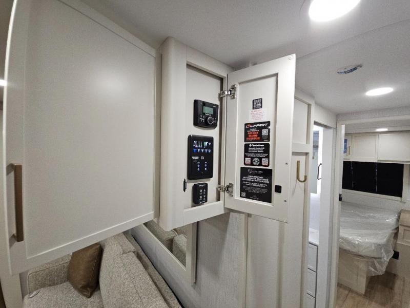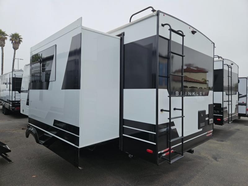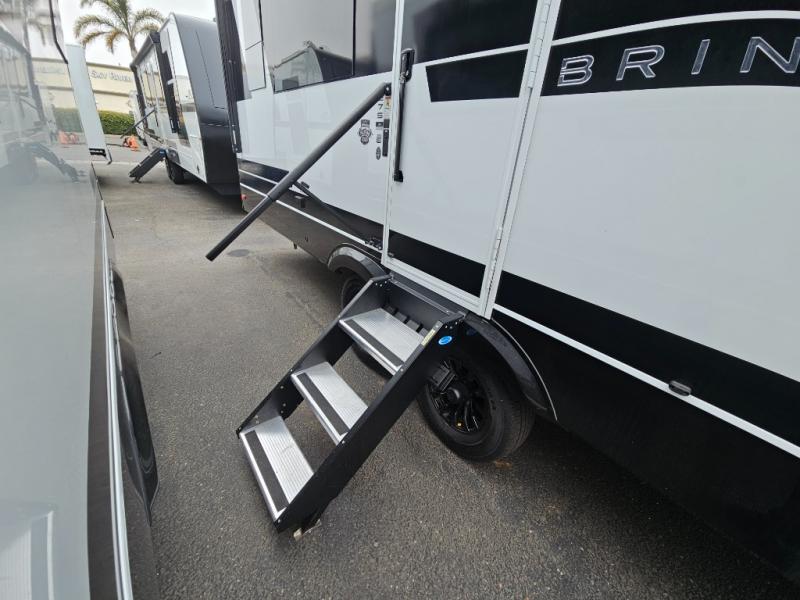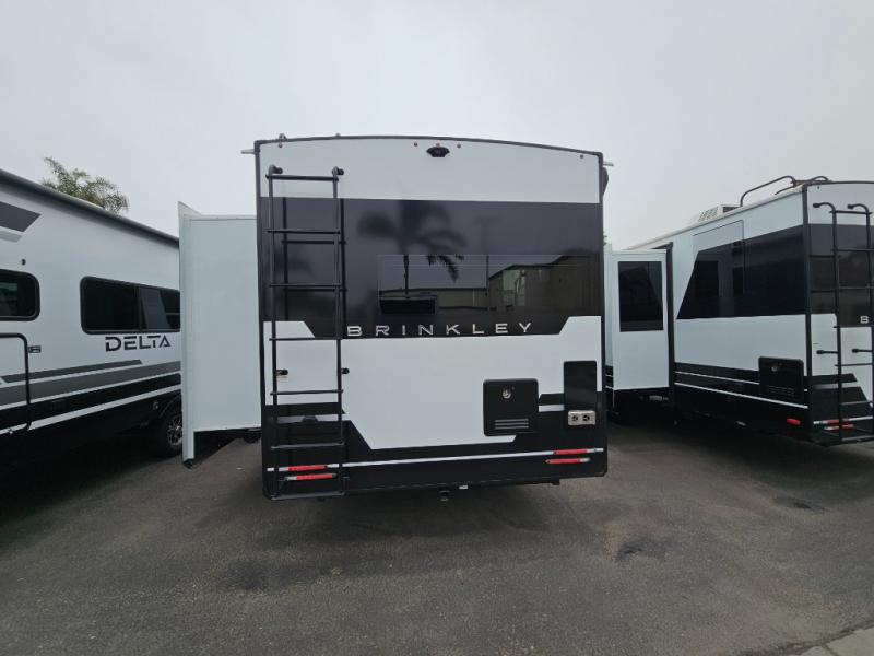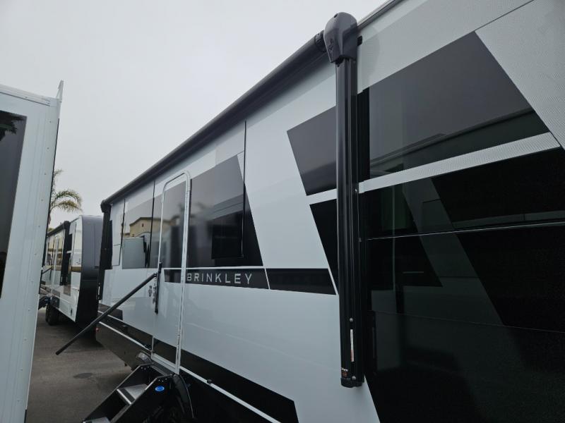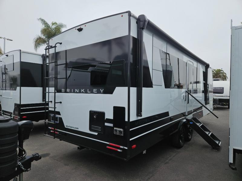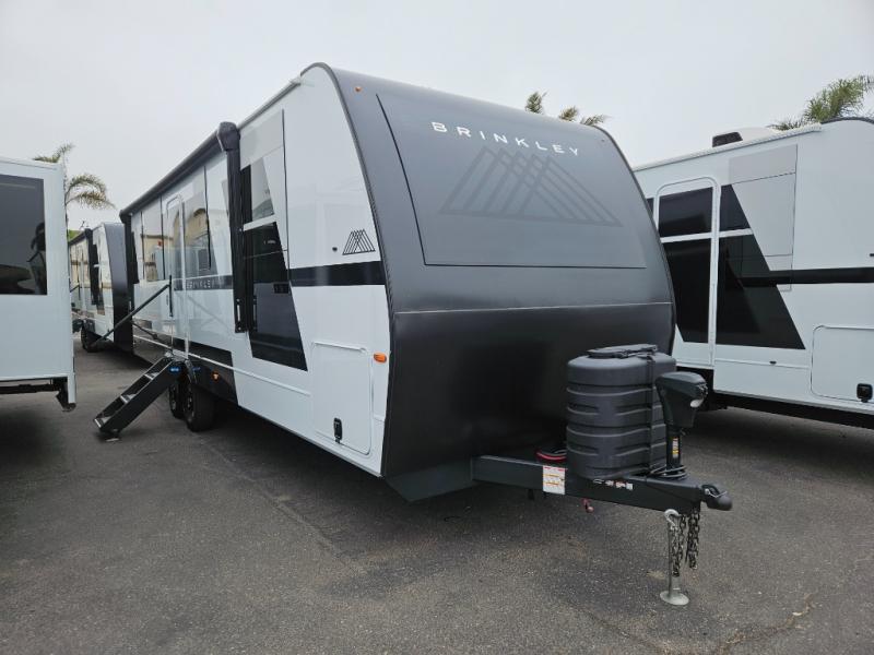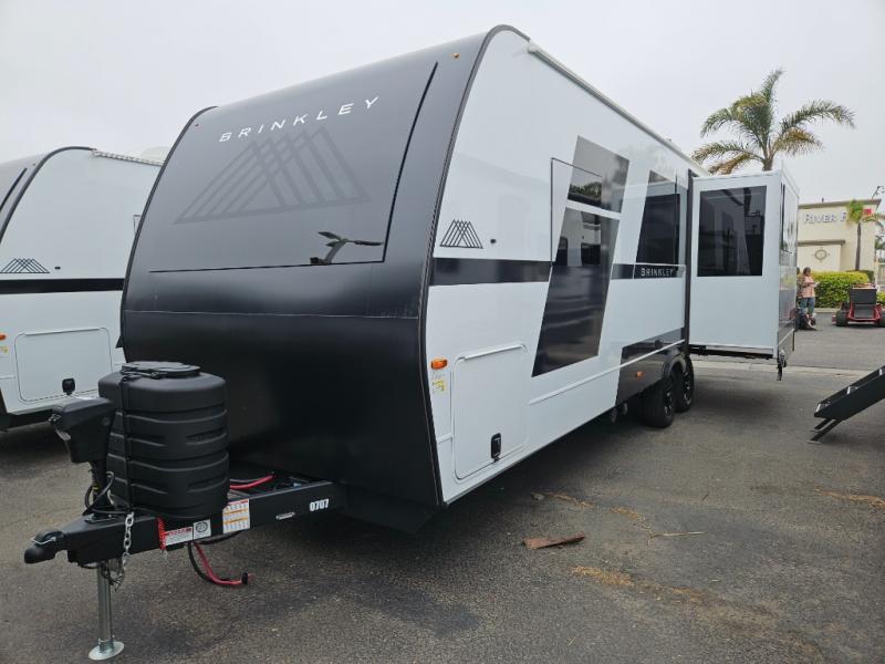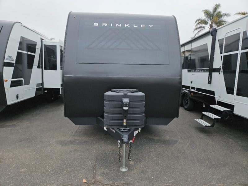The lightweight Model I travel trailer by Brinkley is the perfect choice for those looking for an easy tow and at-home comforts! There is a drop-frame chassis, high-performance Road Armor suspension equalizer system, and Demco EZ Latch trailer coupler that automatically latches when dropped onto a hitch ball without the need of a safety pin. Additional exterior features include square Euro frameless windows, automotive-grade paint, full-width LED strip lighting in the pass-thru, and a pet & property security campside tie-down to keep your gear and furry friends safe. Inside, you'll be wowed by Brinkley's CraftSense wood trim construction, residential solid surface kitchen countertops, dimmable bedroom lights, and marine-grade neon LED shower lighting to name a few stand-out features!