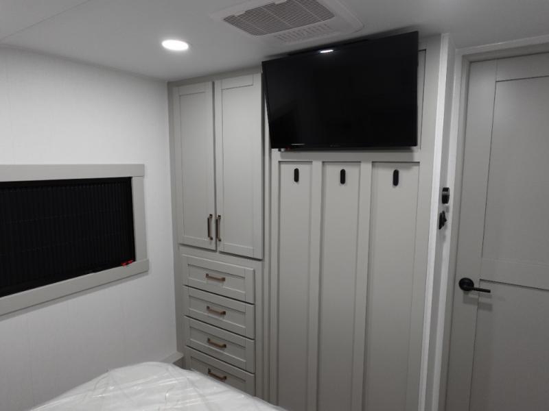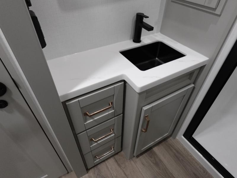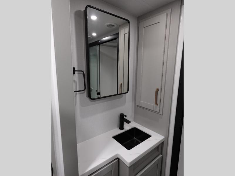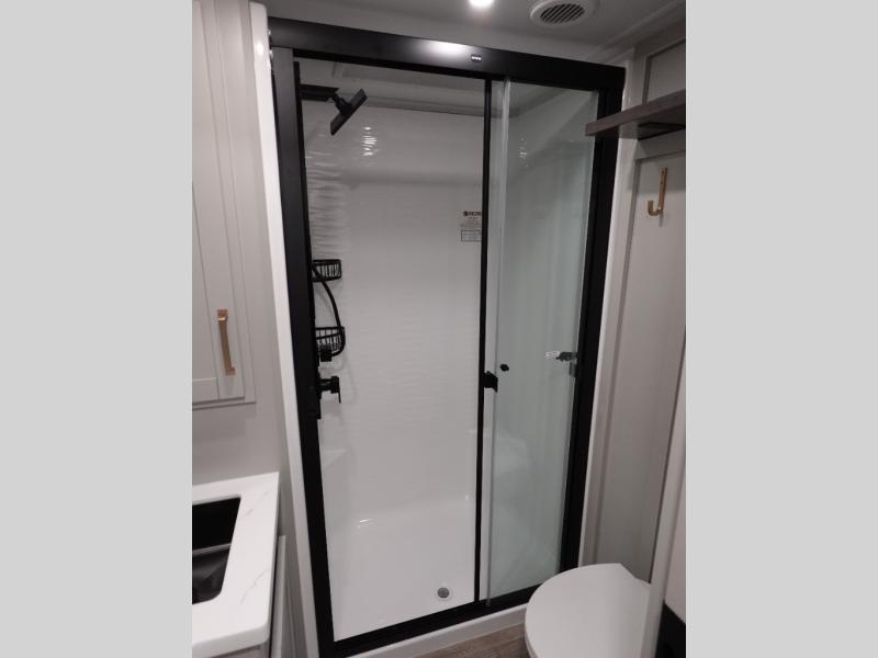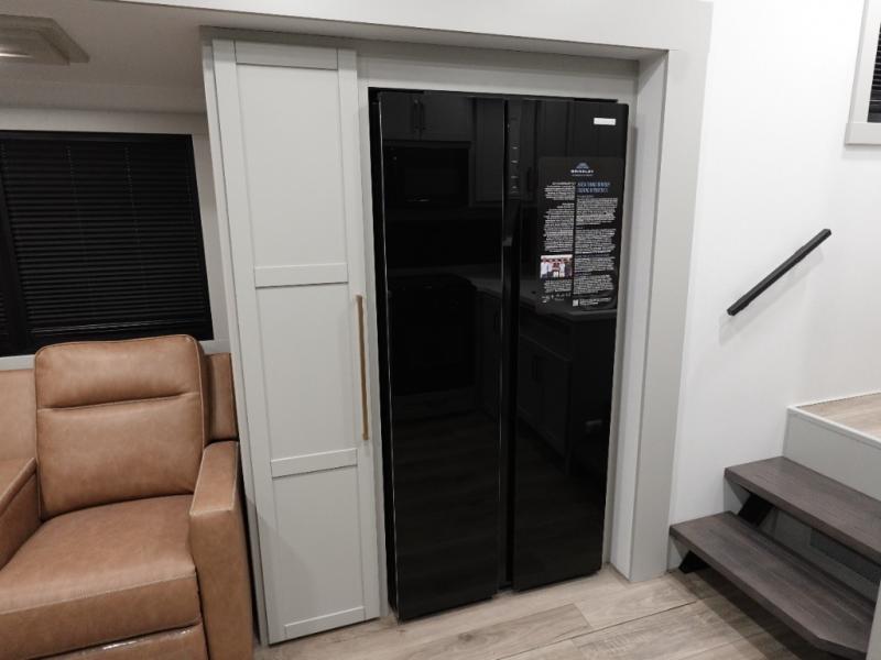The Brinkley mid-profile Model Z fifth wheels bring you clean lines and an upscale look with plenty of style and exciting new features like the industry first brass plumbing connections. These units also feature an automotive grade front cap, plenty of exterior storage, dual exterior hot and cold showers, and wide stance leveling jacks for easy set up. Residential frameless windows provide a clean look and beautiful views, and ample electrical outlets and USB/USB-C outlets allow all of your electronics and appliances to easily be used and charged.