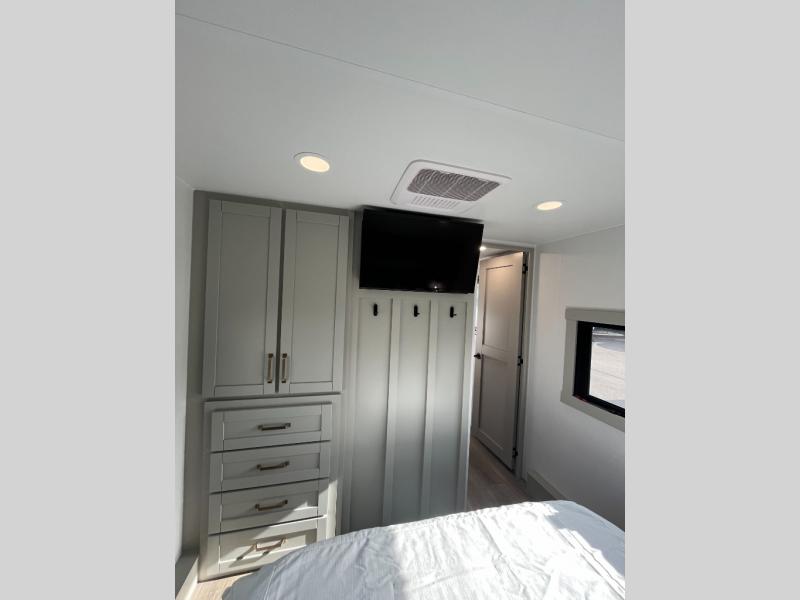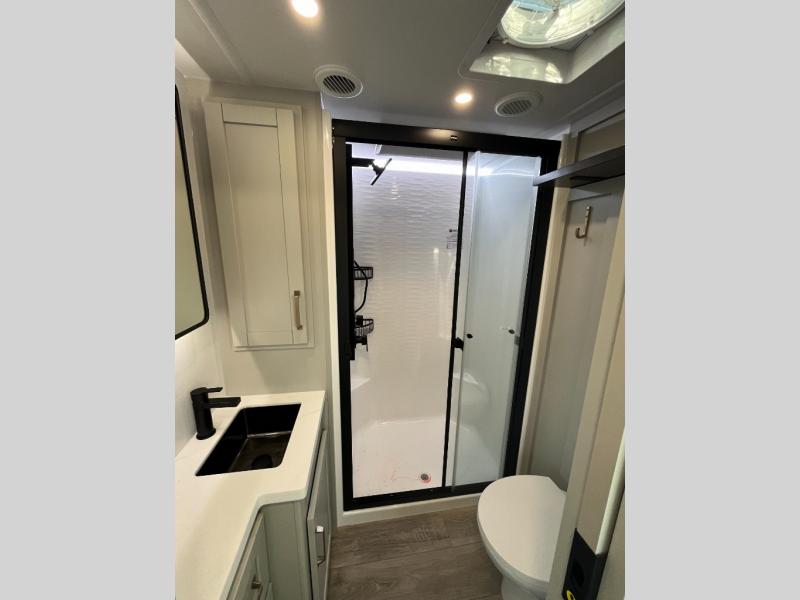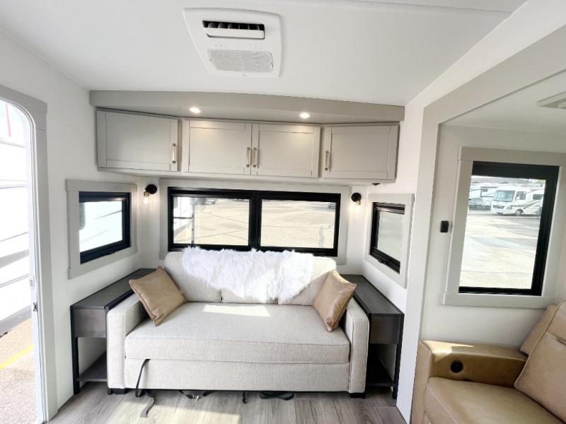 The Brinkley mid-profile Model Z fifth wheels bring you clean lines and an upscale look with plenty of style and exciting new features like the industry first brass plumbing connections. These units also feature an automotive grade front cap, plenty of exterior storage, dual exterior hot and cold showers, and wide stance leveling jacks for easy set up. Residential frameless windows provide a clean look and beautiful views, and ample electrical outlets and USB/USB-C outlets allow all of your electronics and appliances to easily be used and charged.